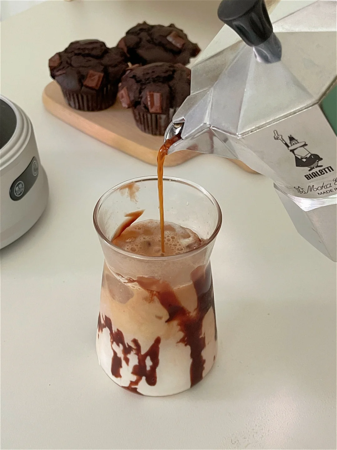 加入萃取好的咖啡一杯好喝的拿铁就完成啦