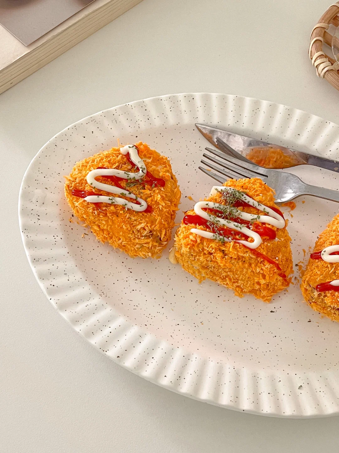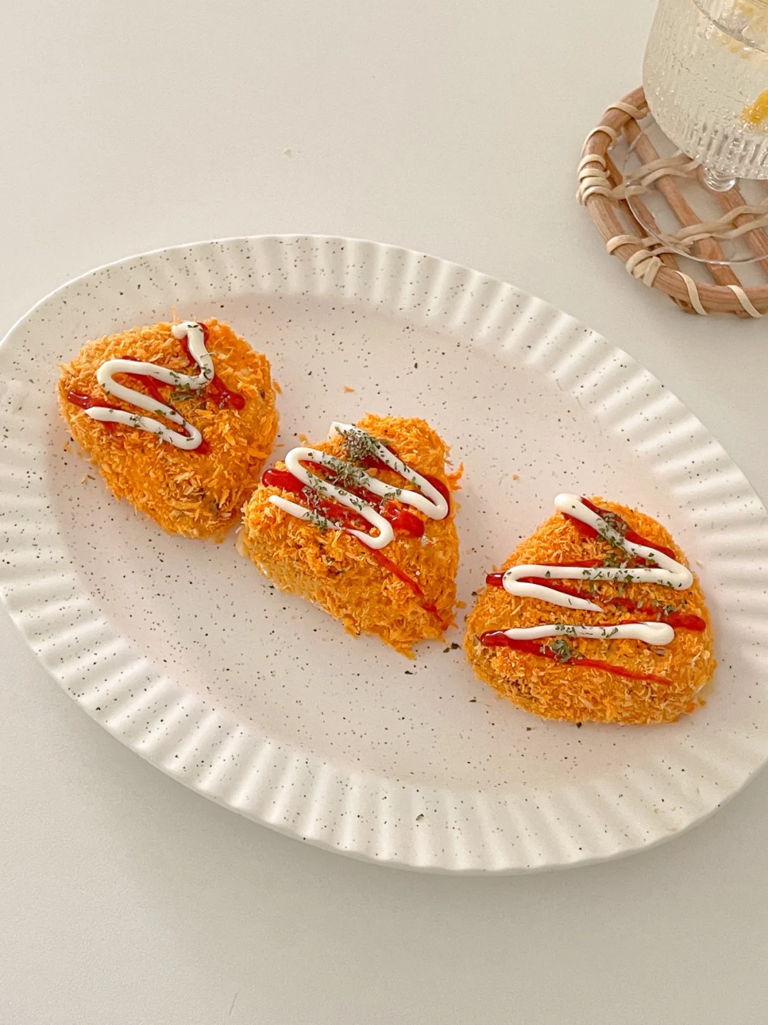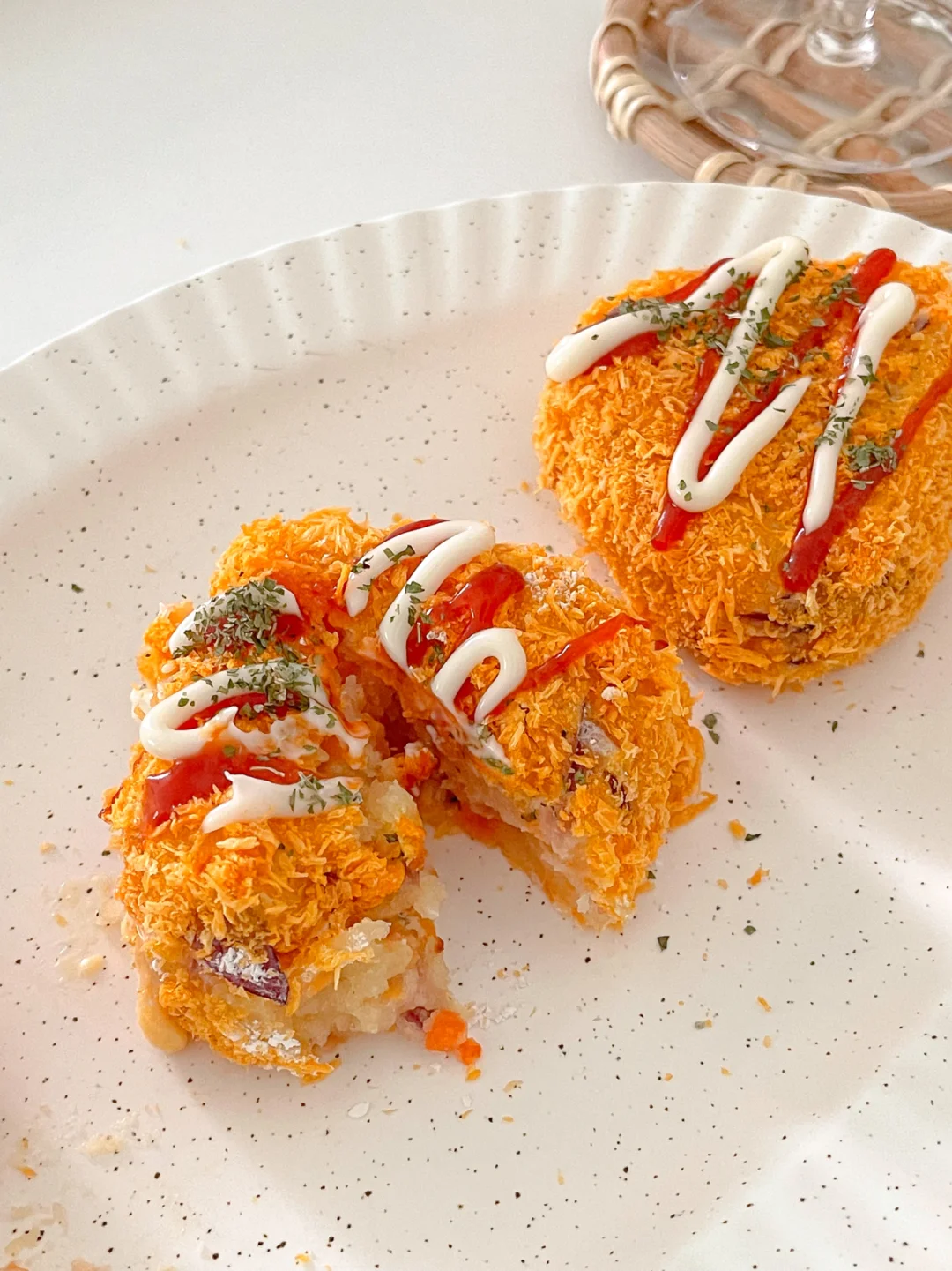 -成型的土豆泥团依次裹上淀粉 蛋液 面包糠