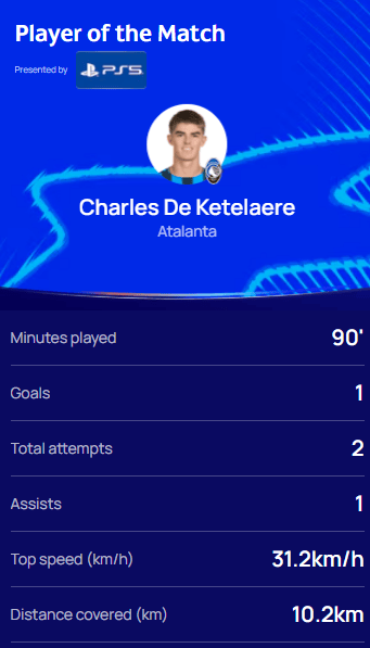 赛后,他也被欧足联技术小组评选为本场比赛的全场最佳球员。