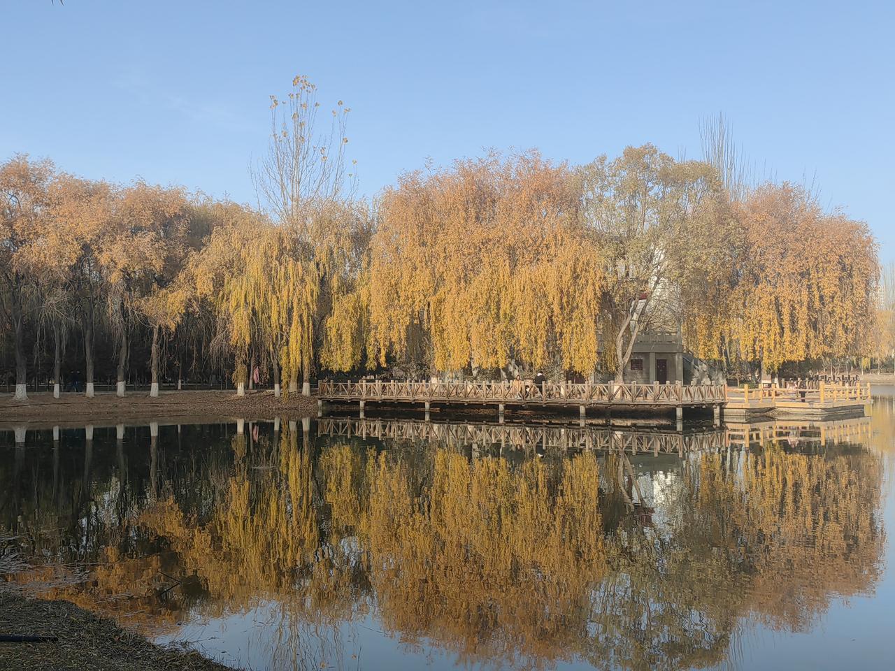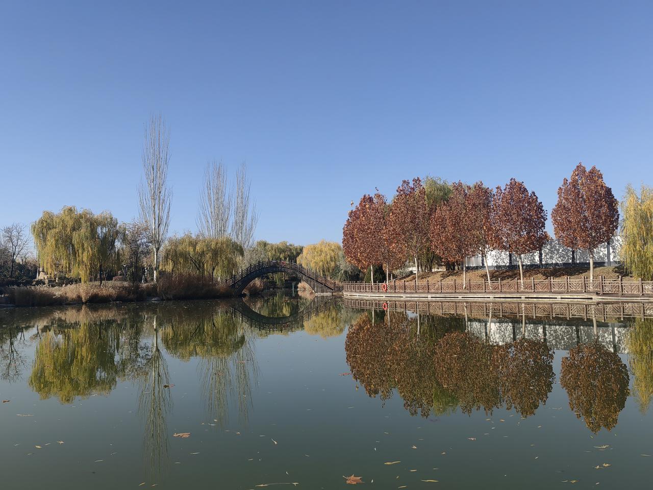 初冬的银川,黄叶成了这座城市的主角。银川市为留住秋景,对部分公园周边实施落叶缓扫,走在中山公园、凤凰公园等周边的人行步道,脚下是金黄的落叶,仿佛踏入了童话世界。 鸣翠湖在秋天也因黄叶“活”了过来,原本被嫌弃的它,到了秋天,芦苇变黄,阳光一照,美极了。候鸟十月在此最热闹,拿上望远镜,感受大自然的生机。 城里的海宝塔下,黄叶飘落,仿佛诉说着千年的故事。而在南关清真寺周边,青砖绿瓦配上黄叶,又是一番别样景致。初冬银川的黄叶,让这座城市充满了温度与诗意。 银川秋景 宁夏秋景