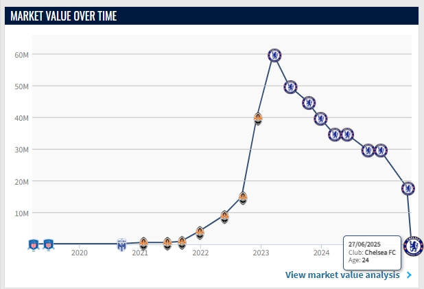 现年24岁的穆德里克,2023年以7000万欧元的转会费加盟切尔西,至今代表球队出战73场比赛,贡献10球11助。在遭遇长期停赛后,切尔西也将他的10号球衣给了帕尔默,德转也在6月末的更新中将穆德里克的身价暂时归零。