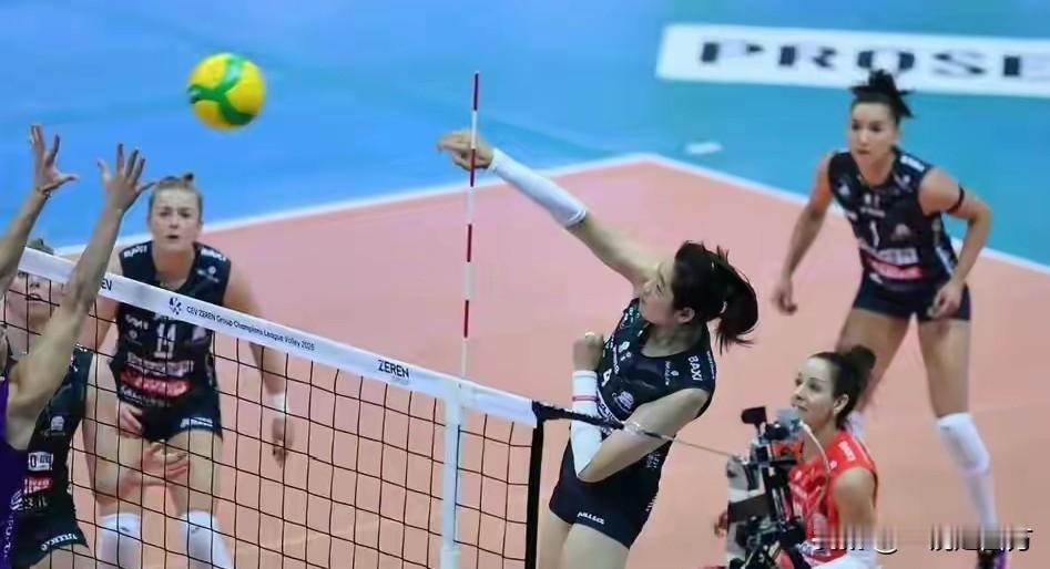 今天凌晨刚刚结束的女排欧冠小组赛首轮意大利科内利亚诺主场对阵持外卡参赛的土耳其泽仁体育队的比赛,科内利亚诺遭遇对手顽强阻击,经过五局鏖战,才以23-25、26-24、23-25、25-22、20-18惊险逆转取胜,艰难赢得开门红,拿到欧冠的23连胜。哈克独得29分,加比21分荣膺单场MVP,首发出场的朱婷打了两局,仅拿到6分,刚刚从全运会赛场回归队伍的她看来状态还在调整,表现一般。不过在赛后合影环节,虽然她站在边上,但所有队友都指向她,能看出她在队伍的地位。