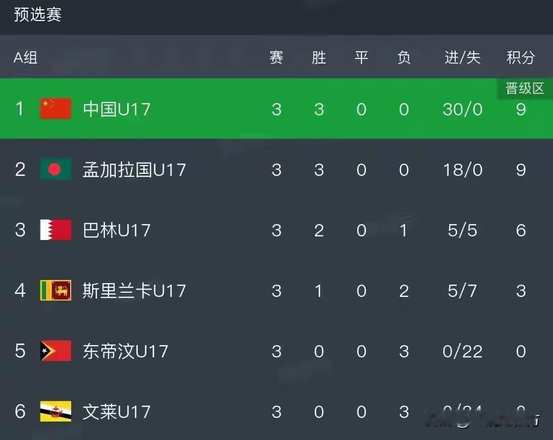 又是一场大胜,在U17亚洲杯预选赛第三轮,中国男足迎战另一支“鱼腩部队”文莱队,最终中国队以12-0狂胜对手,赵松源独中6球,至此,中国队在前三场比赛共打进30球,没有丢球,领先打入18球的孟加拉队,排名小组首位。