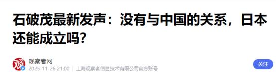 石破茂最新发声:没有与中国的关系,日本还能成立吗? 日本政坛如今的画风,说好听点是分歧严重,说难听点就是有人在拿国家前途赌气。 整个局面像极了一辆刹车失灵的老车,高市早苗这类硬派政客死死踩着油门,方向直指对华强硬的悬崖,而石破茂这位自民党大佬,攥着刹车杆急得嗓子冒烟,却总被一群激进派挤到副驾上靠边站。 作为在自民党摸爬滚打几十年、当过防卫相的资深政客,石破茂比谁都清楚日本的家底有多薄。26日的党内座谈会上,他终于没再藏着掖着,当着几十名议员和媒体的面拍了桌子:没有与中国的关系,日本还能存在吗? 这话听着有点狠,但戳的全是日本的痛处。要知道现在的日本经济,早就是“离了中国转不动”的状态。刚出炉的三季度GDP数据显示,日本实际GDP环比下降0.4%,六个季度来第一次掉回负增长。 罪魁祸首就是出口低迷和内需疲软,而这两件事,偏偏都和中国绑得死死的。日本内阁府刚发布的三季度经济报告,白纸黑字写着实际GDP环比下降0.4%,这是六个季度来首次跌回负增长,连央行行长都承认“复苏动力正在减弱”。 深究下去,拖累经济的两大元凶——出口低迷和内需疲软,全和中国绑得死死的。高市早苗们天天喊“减少对华依赖”,可日本的产业结构早把“中国元素”刻进了骨子里。 作为日本最大的贸易伙伴,2024年中日贸易总额就有3083亿美元,中国既是日本第二大出口对象国,又是最大的进口来源国,光从中国进口的货物就占到日本进口总额的1562.5亿美元。 换句话说,日本工厂里的不少原材料要从中国来,造好的东西又得卖到中国去,这条产业链断了,日本经济就得掉块肉。日本贸易统计数据最能说明问题,2024年中日贸易总额稳稳站在3083亿美元,中国连续15年都是日本最大的贸易伙伴。 对日本企业来说,中国不只是个“市场”,更是“饭碗”——日本对华出口的汽车零部件占其出口总额的12%,半导体材料占比更是高达23%,这些都是丰田、索尼等巨头的核心营收来源。 而从中国进口的机电产品、纺织原料,又支撑着日本中小企业的生产链,光2024年从中国进口的货物就占日本进口总额的23.5%,达1562.5亿美元。 这种一荣俱荣、一损俱损的关系,高市早苗们或许懂,只是为了选票故意装糊涂。最典型的就是日本汽车业,这可是他们的经济支柱。 可今年一季度的数据看得人揪心,日产汽车中国区销量同比下滑25.88%,东风日产更是跌了28.72%,三个月累计销量才刚过12万。 要知道以前中国市场可是日系车的“基本盘”,现在销量掉得这么厉害,车企老板们早就坐不住了。这还没算上中国新能源汽车的竞争压力,要是真把中国市场逼到对立面,日本汽车业的日子只会更难过。 更要命的是,汽车业一凉,上下游的零部件厂、模具厂也跟着遭殃,爱知县就有三家零部件企业因为订单锐减倒闭,几百名工人失业后举着牌子在县政府门口抗议,喊着“要和中国做生意”。 更别说靠中国游客撑着的观光业了。2024年去日本的中国游客,消费总额直接排到各国第一,那些药妆店、电器行、免税店,以前一到旺季全是说中文的游客。 现在虽然慢慢恢复,但要是中日关系再紧张,这些生意又得凉。日本家庭本来就因为物价涨得快,手里的钱不敢乱花,私人消费增速从0.4%滑到0.1%,要是连观光业这块收入都没了,内需只会更疲软。比汽车业更慌的是日本农业和观光业。 日本的高端大米“越光米”,每年有40%要卖到中国,现在因为核污染水排海的争议,中国海关加强了检测,通关时间从3天拖到10天,不少米商眼睁睁看着大米在港口发霉。 神户的和牛养殖户更惨,以前一头和牛卖到中国能赚20万日元,现在订单直接少了六成,有的养殖户只能把小牛提前出栏,亏得血本无归。 观光业更是“靠中国游客吃饭”,2024年去日本的中国游客虽然恢复到疫情前的七成,但消费力一点没减,人均花掉8万日元,占外国游客消费总额的58%。 京都的老字号温泉旅馆老板说,旺季时店里80%是中国客人,要是中日关系再紧张,今年冬天就得裁员。 可高市早苗们好像看不见这些,还在喊着“要让中国撤除专属经济区浮标”,甚至放话当选首相就去参拜靖国神社,完全不管这些话会给日本产业带来多大冲击。 现在日本企业界已经开始着急,经团联会长天天往自民党跑,就怕政客们真把中日关系搞僵,到时候全日本的饭碗都得受影响。