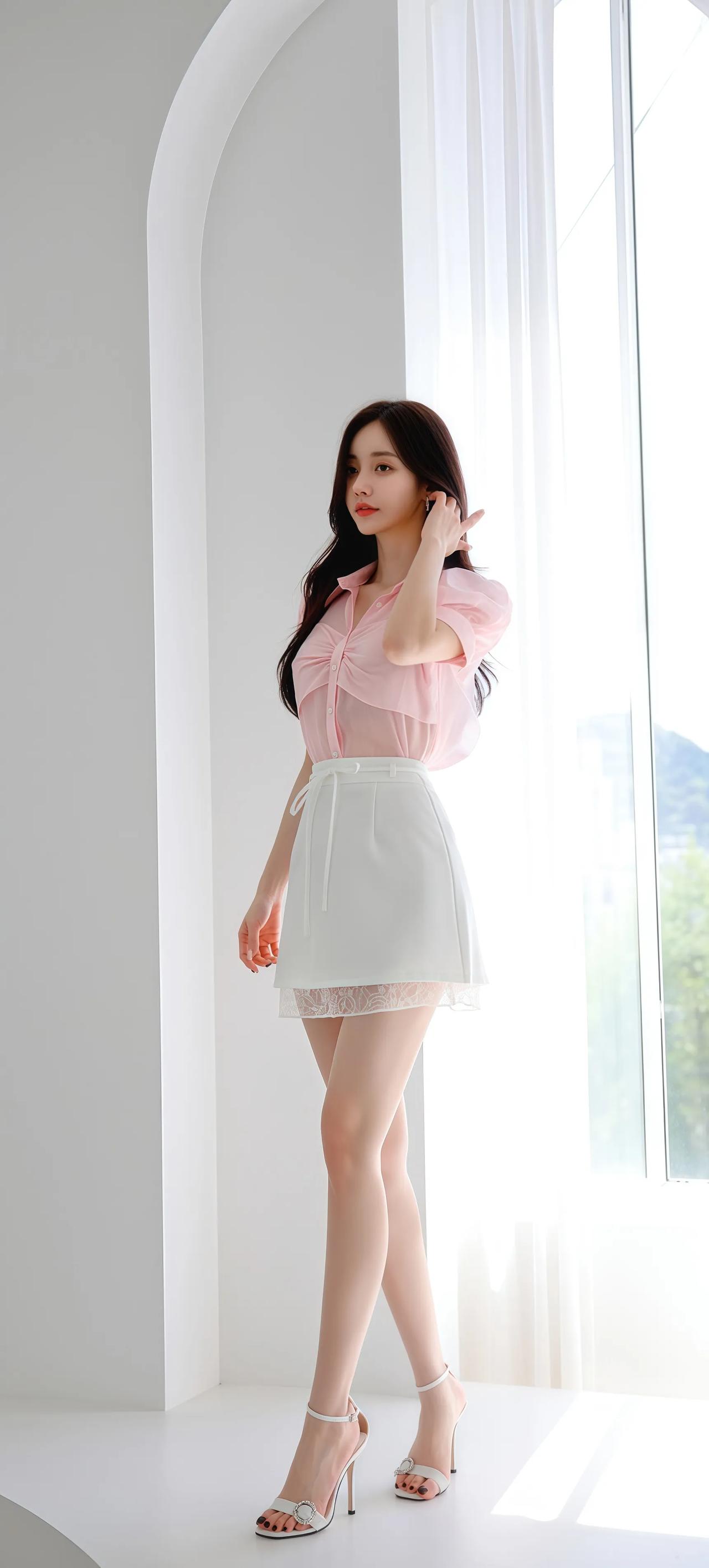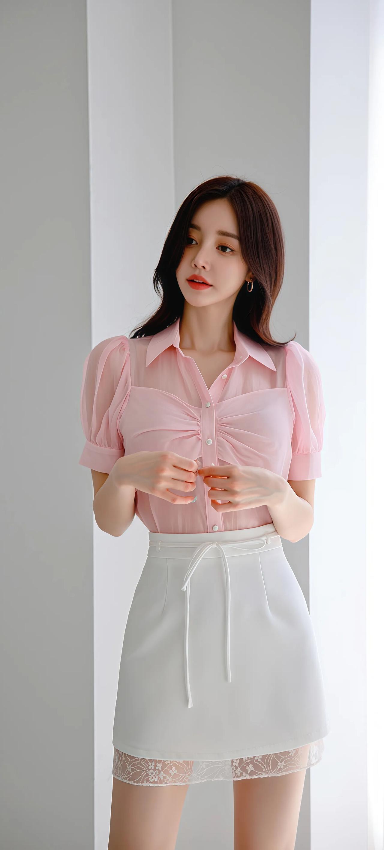 甜美少女风穿搭,粉色衬衫搭配白色短裙,优雅气质满满!💗👗👠