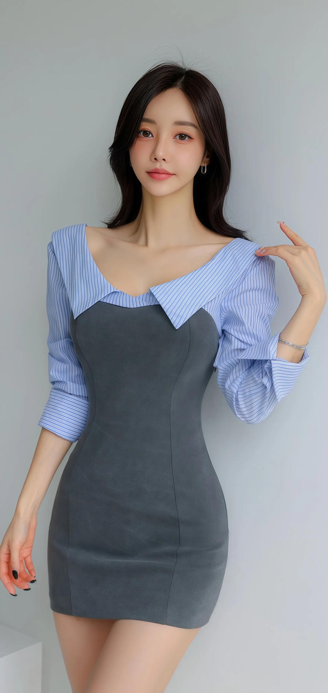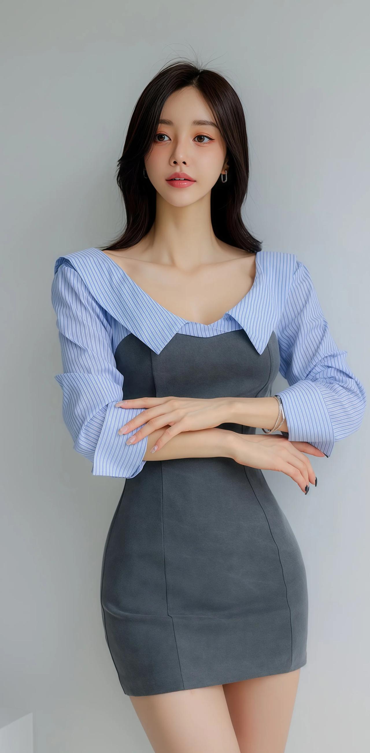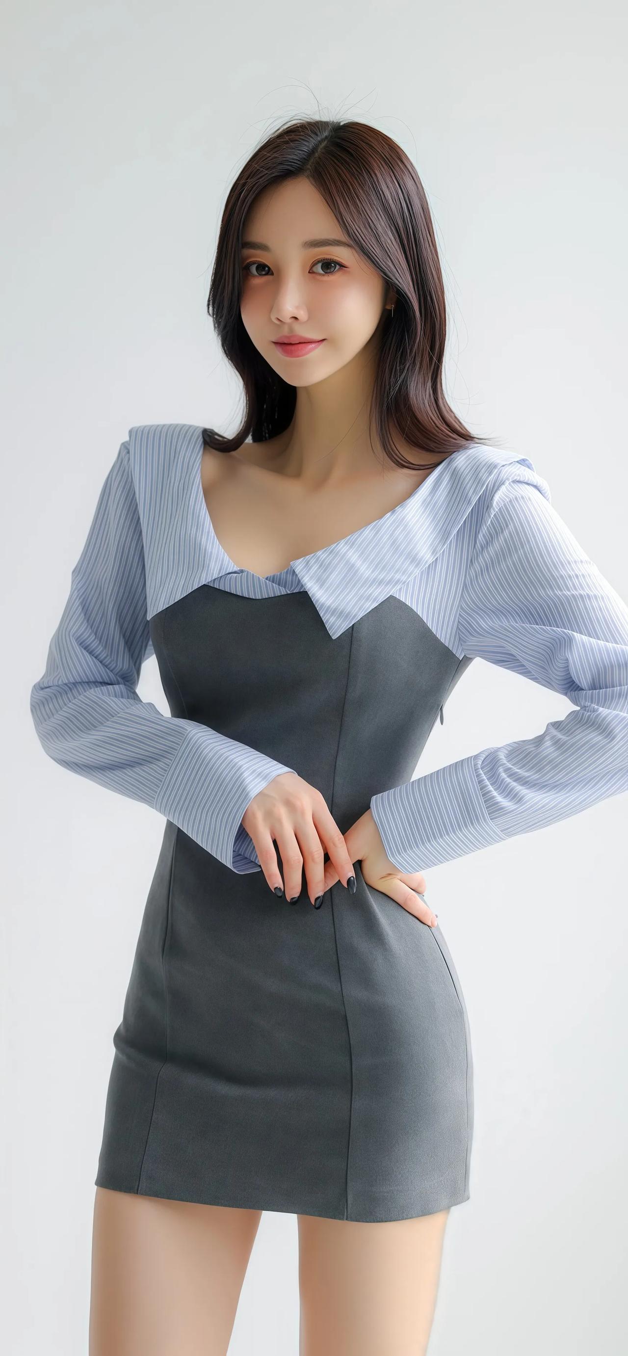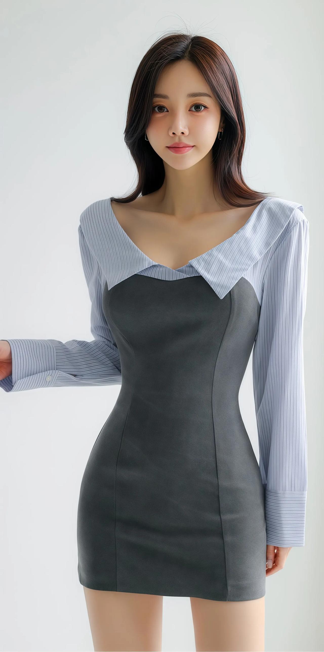 优雅气质穿搭,灰色连衣裙搭配黑色高跟鞋,尽显女性魅力!👗👠