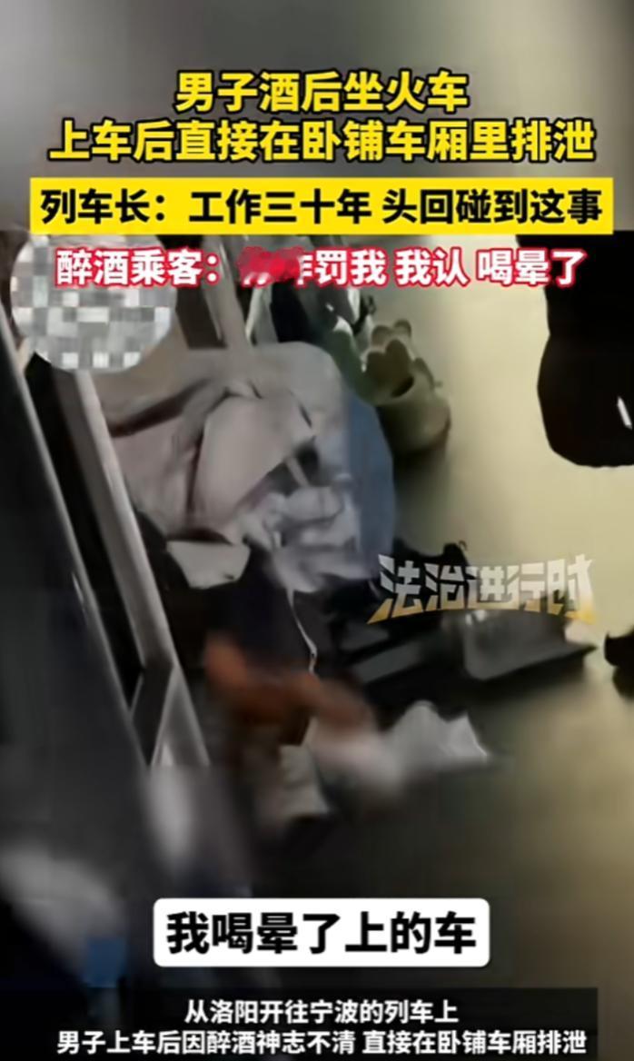 “乘客天塌了!”11月22日,河南南阳,一男子上火车后,因为醉酒神志不清,竟然在卧铺车厢内大便,一时间整节车厢臭气熏天,周边乘客的鞋子和箱子都被殃及,随后列车员立即报警,让男子对乘客进行相应赔偿。网友:简直丢人现眼! 出门坐卧铺图的就是能伸直腿安稳睡一觉,尤其是深夜的卧铺车厢,灯光熄灭后大部分人都沉浸在梦乡或浅睡中,静谧的氛围本该是旅途里最宝贵的休息时刻,可谁也没想到,这节封闭的车厢里,会突然上演这么一场让人一辈子都无法直视的闹剧。 当时一个摇摇晃晃的身影在昏暗的过道里停下,看得出来这男子喝得酩酊大醉,酒精已经彻底接管了他的大脑,连最基本的廉耻心和判断力都没了,他没有走向车厢两端的卫生间,反而当着满车厢人的面直接脱下裤子,就在过道里开始大便。 这可是封闭的卧铺车厢啊,空间狭窄空气不流通,那种杀伤力简直是核弹级别的,恶臭没有丝毫遮掩,借着空调循环系统瞬间填满了整节车厢,呛得人头晕脑胀,周边铺位的乘客最先遭殃,被这突如其来的臭味熏得瞬间清醒,睁眼一看眼前的景象,胃里顿时翻江倒海。 更倒霉的是住在下铺,还有把行李放在过道边的乘客,他们的鞋子、行李箱直接沾染上了恶心的污秽物,想想看半夜睡得正香,突然被臭气熏醒,还发现自己的随身物品遭了秧,那种火气真的能直接把人点着,车厢里瞬间就炸了锅,愤怒的指责声、争执声此起彼伏,原本的宁静被彻底打破,所有人都被这无底线的行为激怒了。 好在一名路过的乘客第一时间报了警,列车员和乘警很快赶到了现场,他们没有只做口头警告,而是先着手处理最棘手的卫生问题,乘警责令这名醉酒男子必须自己收拾残局,让他拿着纸把排泄物包起来亲自扔进厕所,这不仅是在清理现场,更是一种强制性的醒酒手段,让他为自己的行为付出直接代价。 对于那些遭受无妄之灾的相邻铺位旅客,单纯清理现场显然无法平息怒火,工作人员赶紧安抚大家的情绪,立刻为周边铺位更换了全套卧具,还帮忙清理被污染的行李和鞋子,尽最大努力把那种恶心的体感残留降到最低。 绿皮车出行虽然经济实惠,但 “便宜” 从来都不是纵容低素质行为的理由,经过现场一番调解,这名男子酒醒了几分,终于意识到自己闯了多大的祸,不得不当着众人的面,向受影响的旅客道歉,还掏了钱进行相应的赔偿。 虽然列车没有因为这事晚点,可那一整车厢人心里留下的阴影,恐怕一时半会儿是散不掉了,想想看,好好的一趟旅途,被这么一场荒唐事搅得面目全非,换谁都得膈应好久。 公共空间从来都不是私家领地,不能想怎么样就怎么样。酒精更不是可以随时随地撒野的挡箭牌,喝多了不是借口,失去理智也不能成为免责的理由,这名男子的行为,不仅污染了车厢环境,更践踏了公共文明,最后还得用自己的尊严和钱包来买单,真的是既丢人又得不偿失。 网友们看到这事儿后,都忍不住吐槽 “简直丢人现眼”“刷新了底线”,是啊出门在外,多一份自觉,多一点对他人的尊重,才能让旅途更顺畅,这种不顾及他人感受的低素质行为,不仅会遭人唾弃,还得承担相应的后果,实在是得不偿失,希望这事儿能给所有人提个醒,无论喝没喝酒,在公共场合都得守规矩、讲文明,别做这种让人不齿的事。 (信息来源:《男子酒后坐火车上车后直接在卧铺车厢里排泄,列车长:工作三十年头回碰到这事,醉酒乘客:你咋罚我 我认喝晕了》法治进行时)