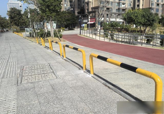 公园几个入口都装有隔离围栏,防止电动车驶入。