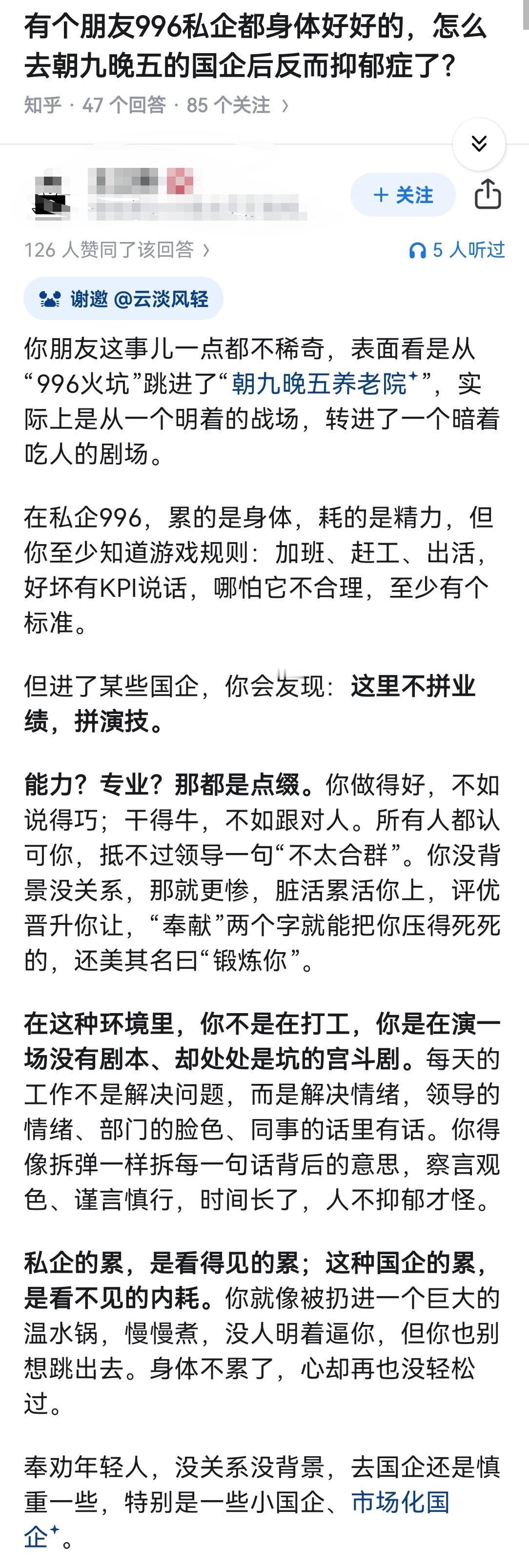 有个朋友996私企都身体好好的,怎么去朝九晚五的国企后反而抑郁症了?