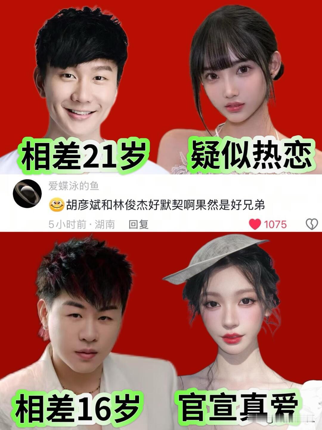 秦岚和钟汉良都懵了 林俊杰和胡彦斌这是砸场子呀,一个个都40多岁了,女朋友才20出头,他们拍的中年现偶不是正中眉心嘛,都没公信力不权威了。 这下好了观众都知道真相了,都相信男人喜欢年龄小的,他俩的剧《亦舞之城》马上要播,谁还看呀。 霍建华还是运气好,他的剧刚刚播完了,愁的是钟汉良呀,是真的时运不济。