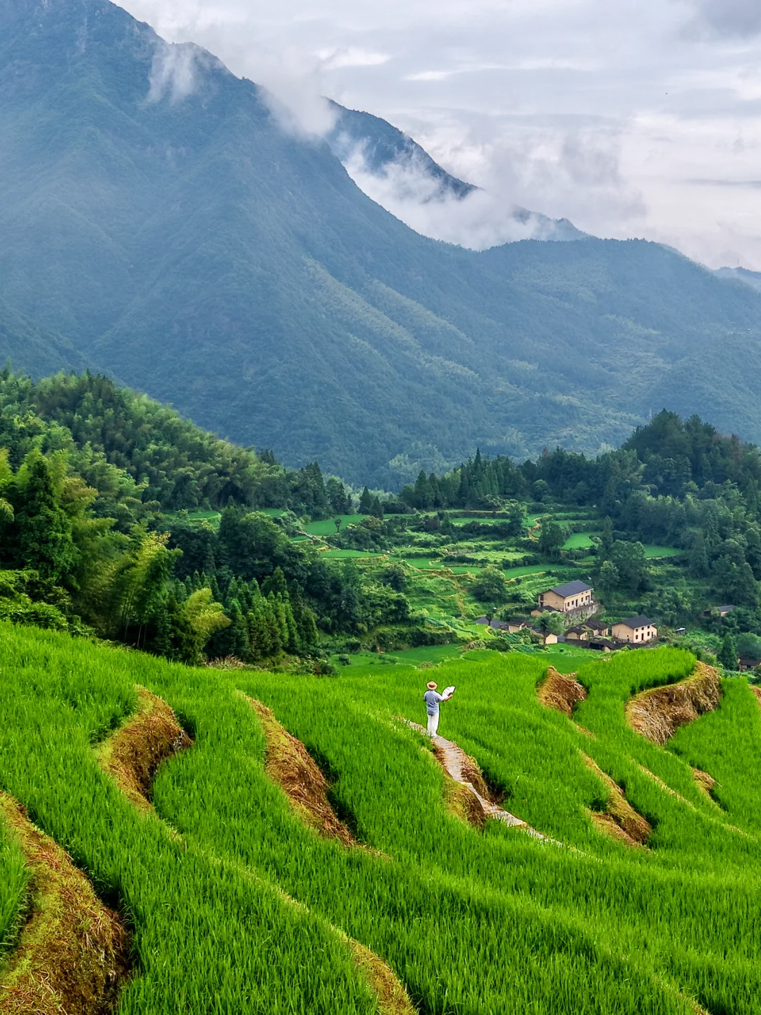 这里适合早上看日出云海,连绵不断的梯田非常震撼,当第一缕阳光洒在梯田时,整个山谷都在发光,穿上短裙戴上草帽,在农耕小道上分分钟拍出大片