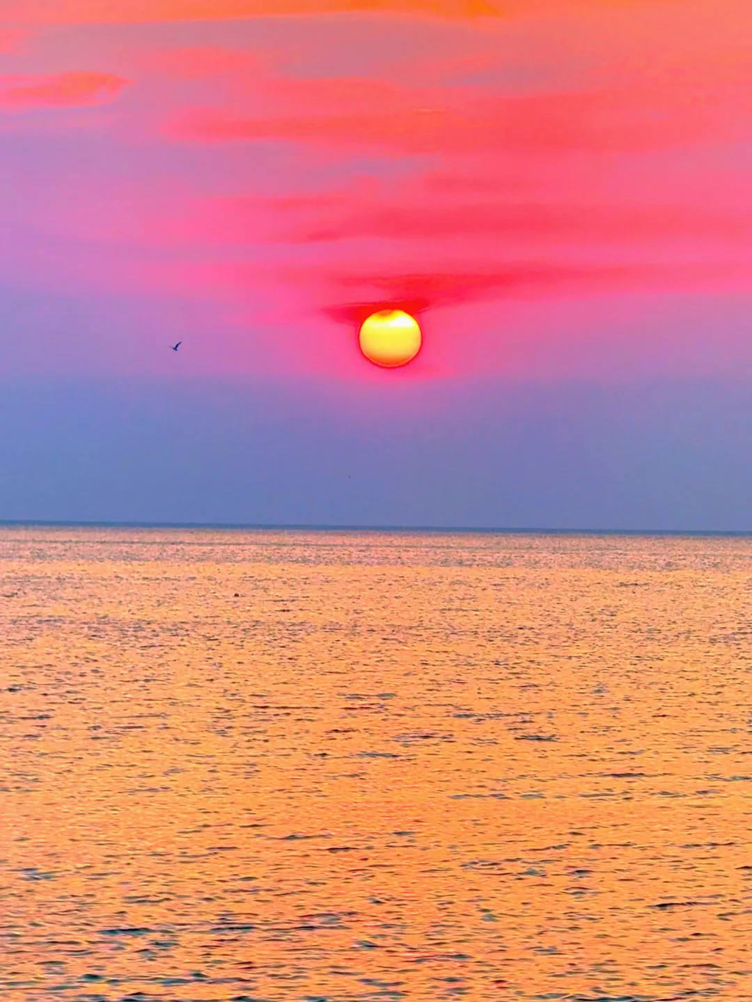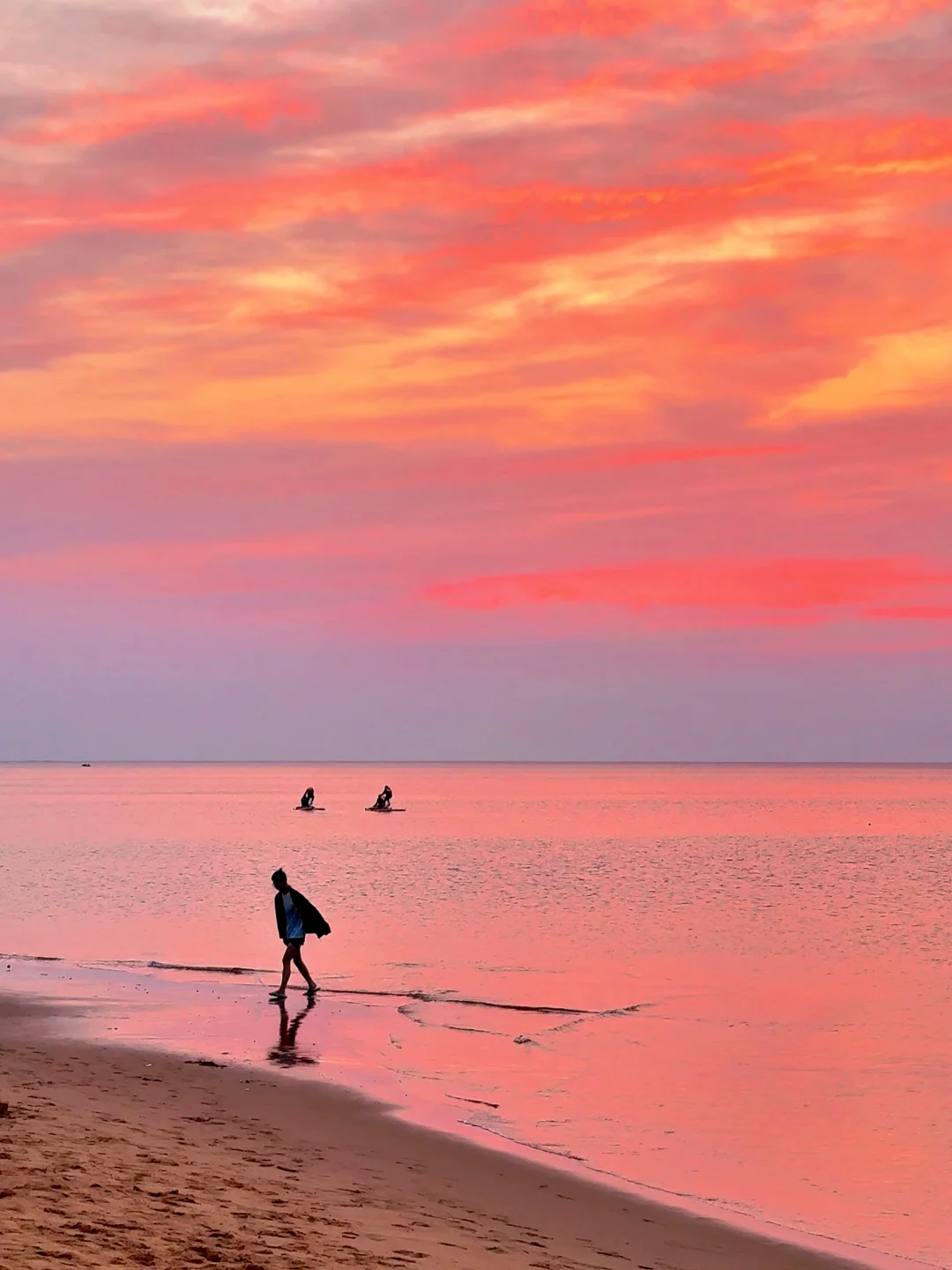 简直是太美了!! 粉色,橘色日落,美到失语🥹🥹 . 📍威海国际海水浴场 .