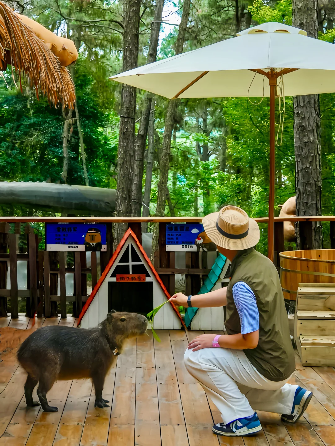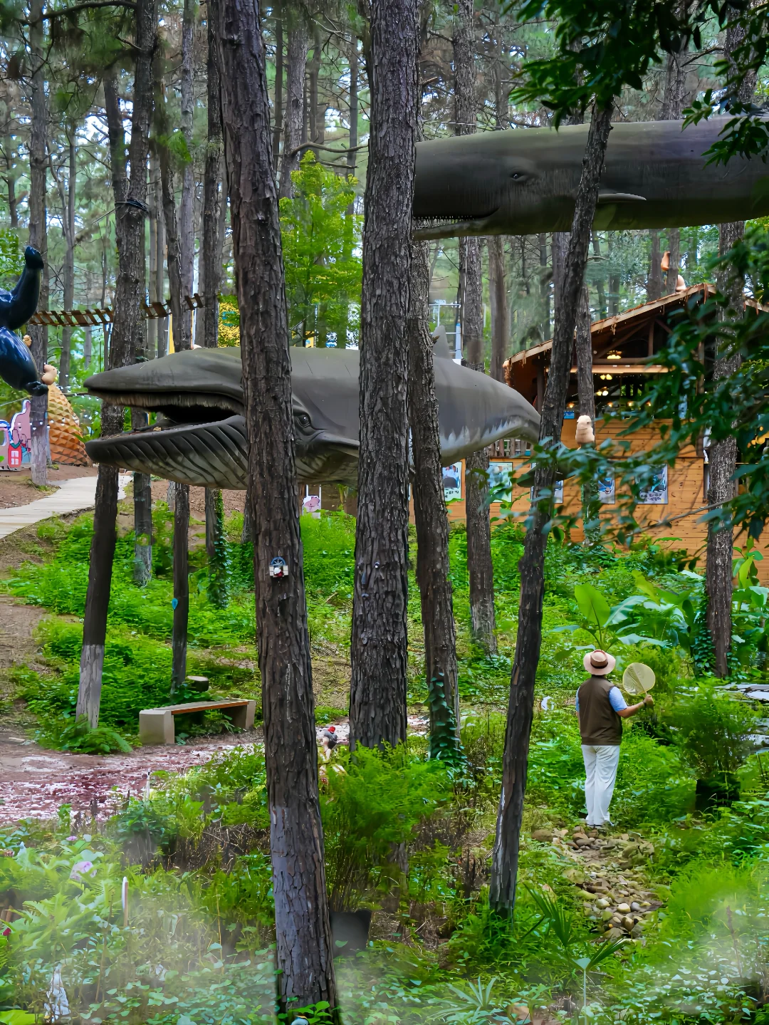 3⃣魔法黑森林:前一秒是现实版莫奈花园,有一只巨大猫猫和两只鲸鱼,后一秒就进入了亚马逊热带雨林,喂喂卡皮巴拉,喝杯咖啡,躺在吊床上好惬意😌