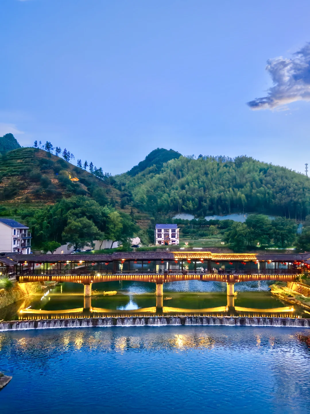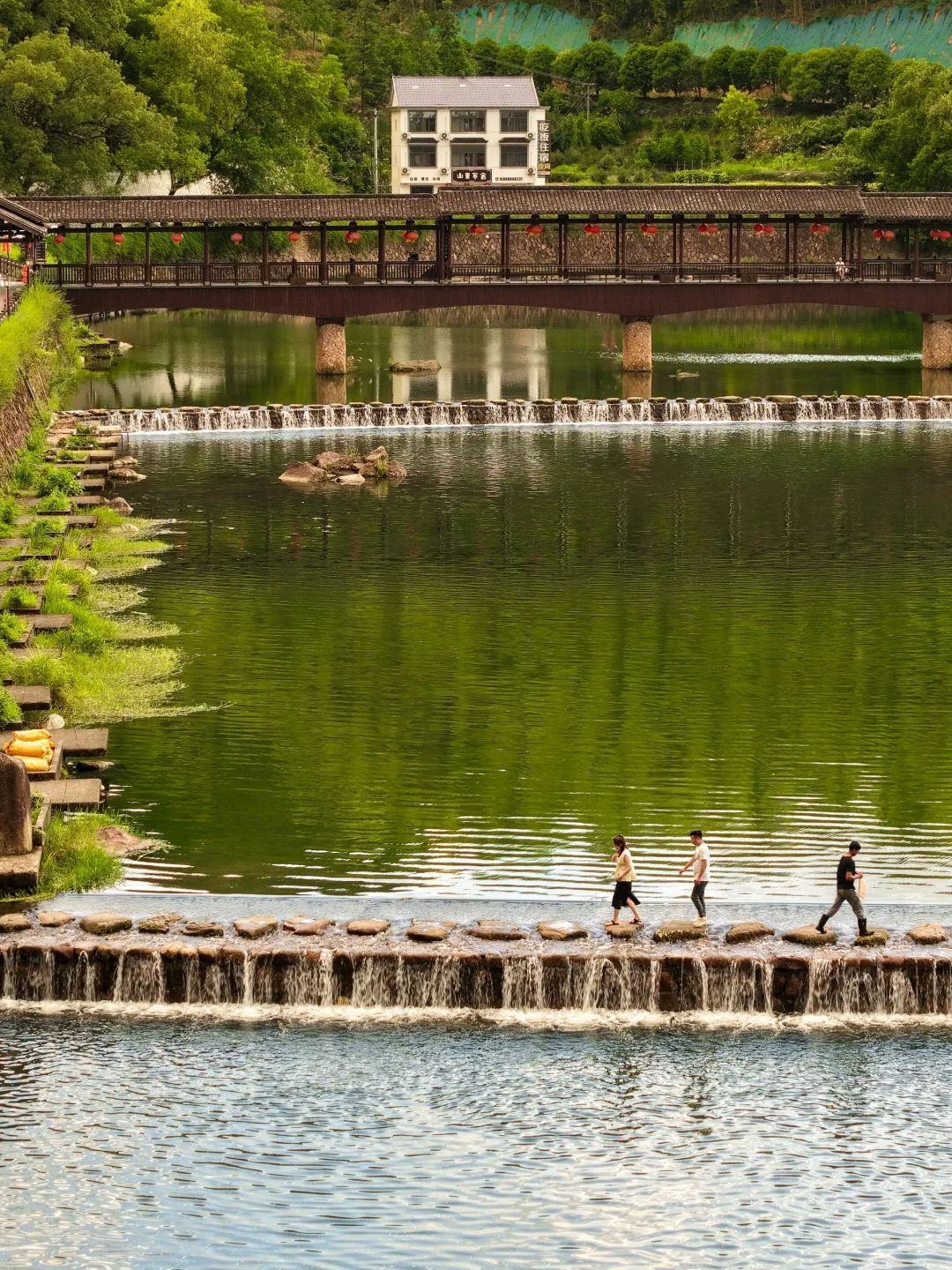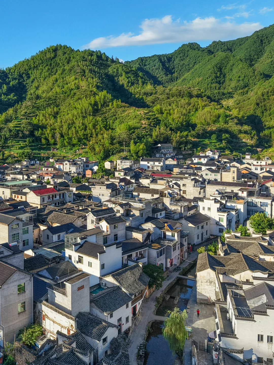 青山环抱,流水潺潺,处处是白墙黑瓦的古民居