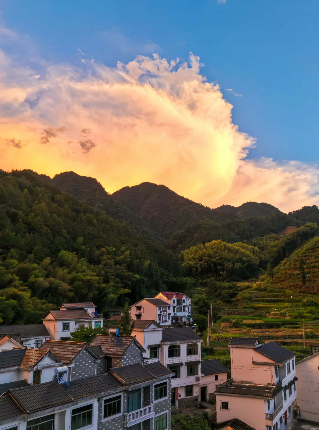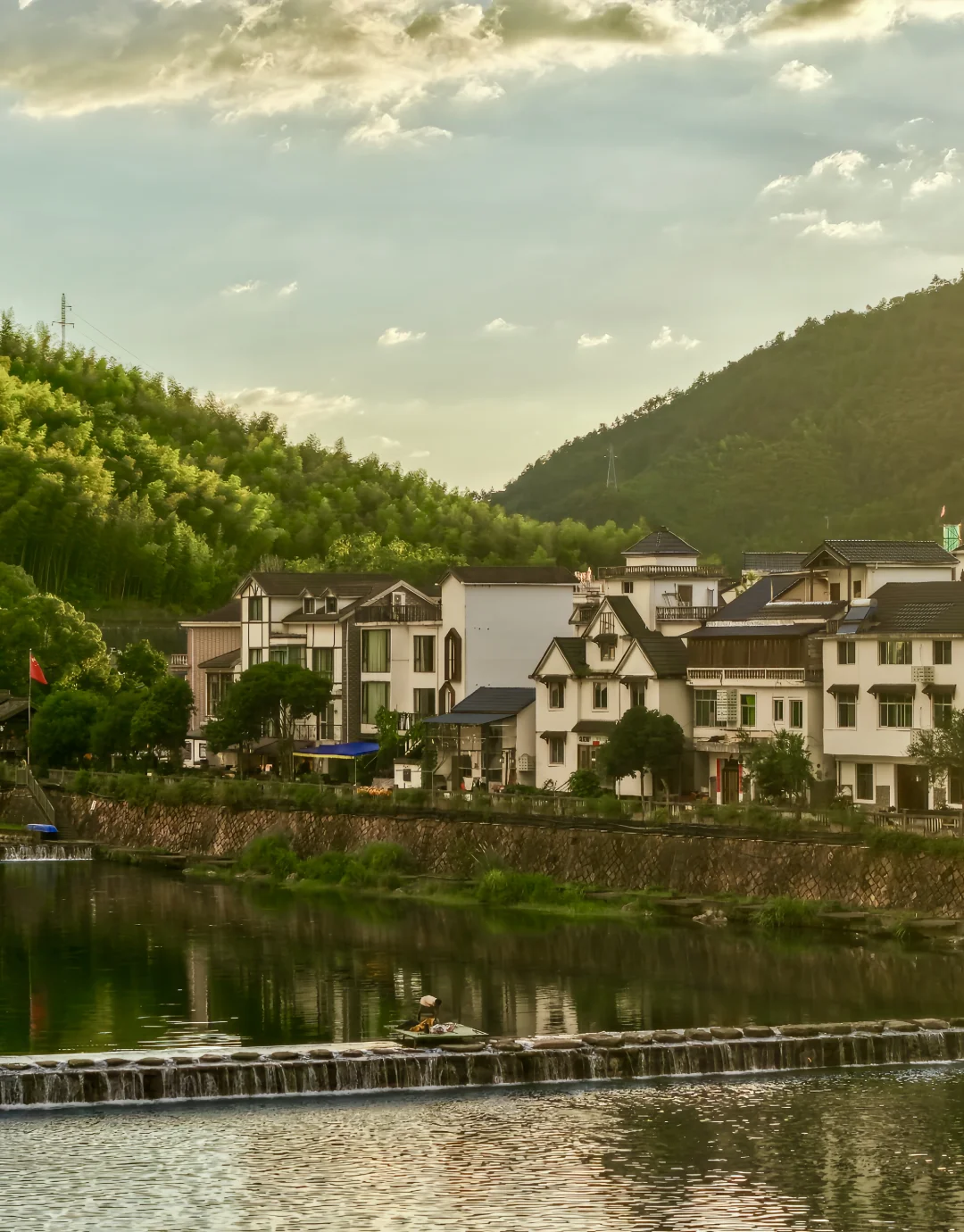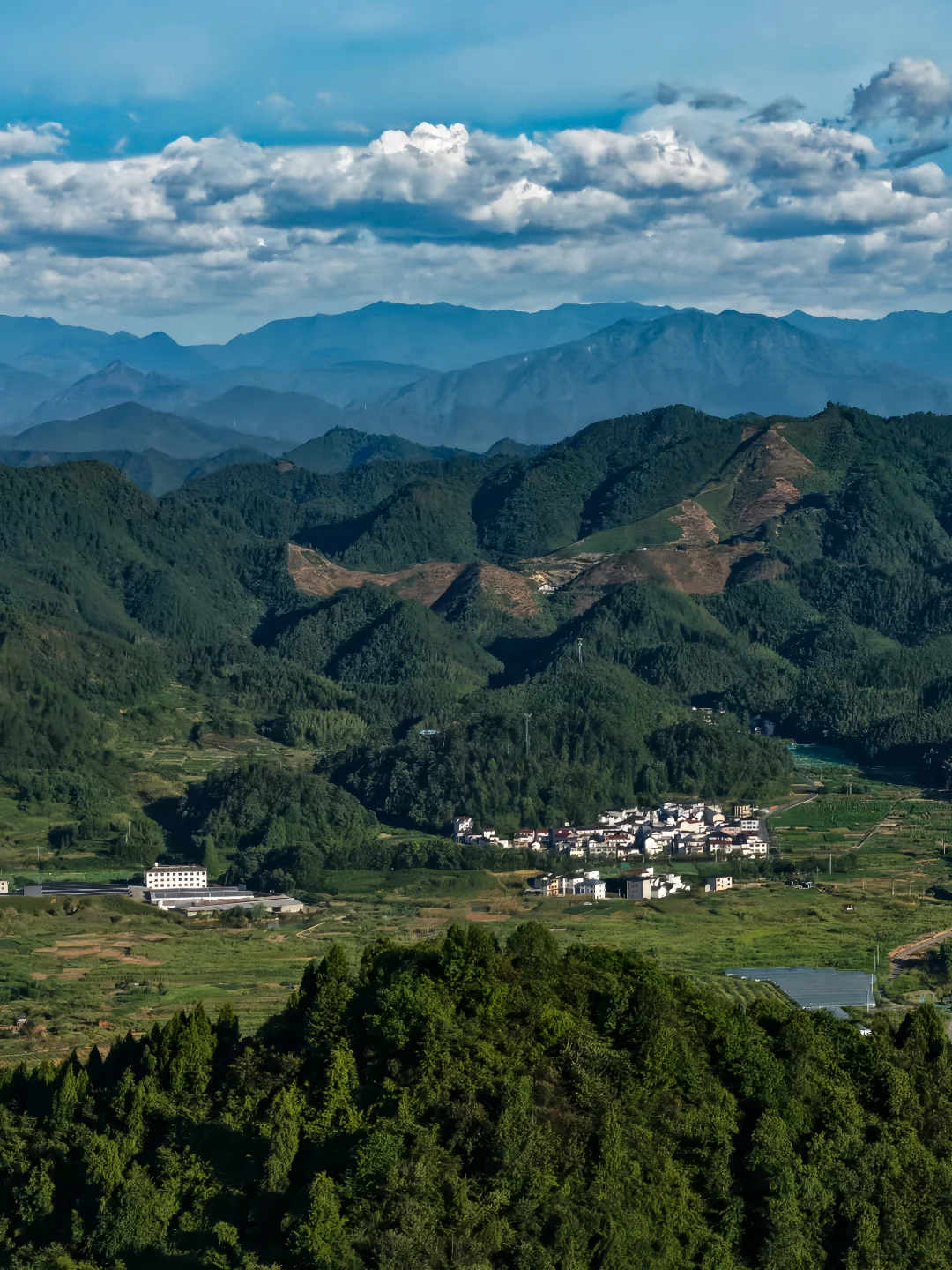 青山环抱,流水潺潺,处处是白墙黑瓦的古民居
