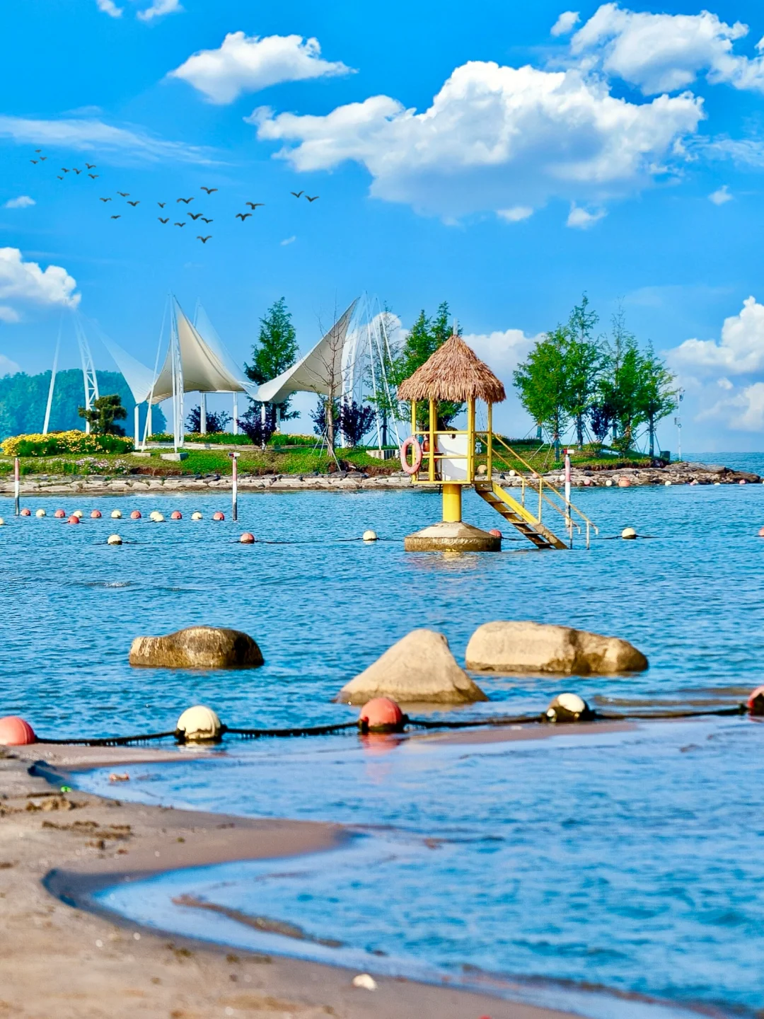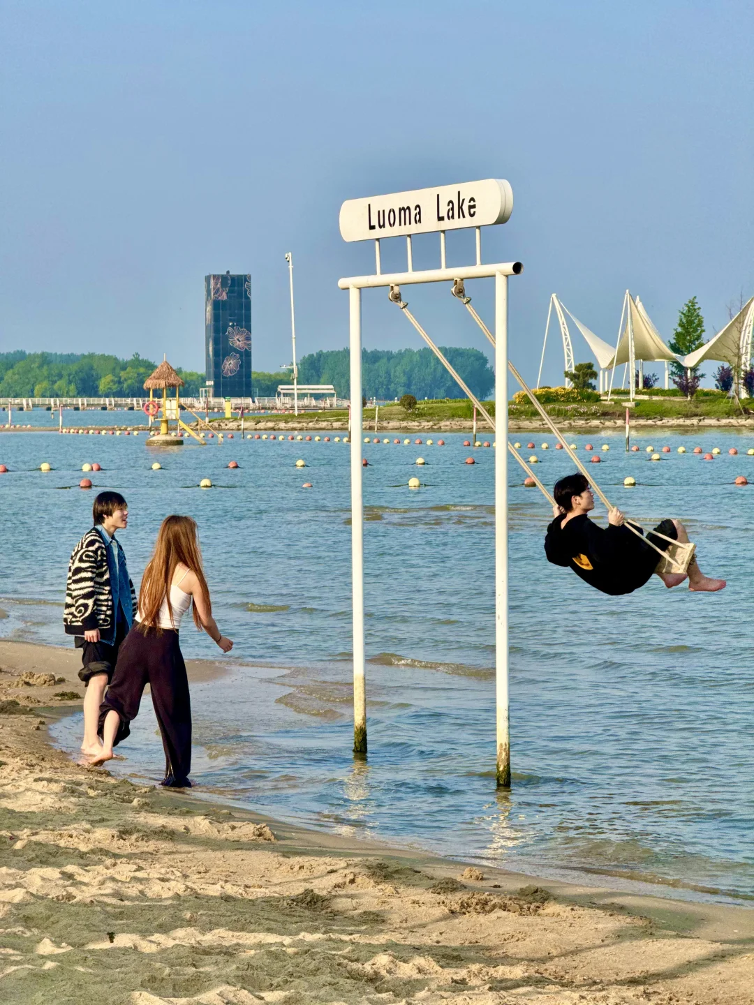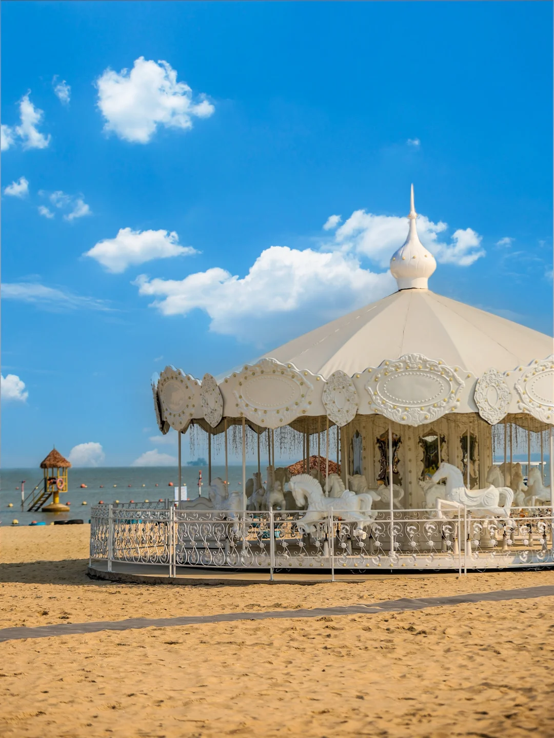蓝天,白云,沙滩,仿佛置身于海边,湖边秋千,沙滩摩托和旋转木马🎠,好玩又浪漫💕,等到日落时分,邂逅一场橘子海