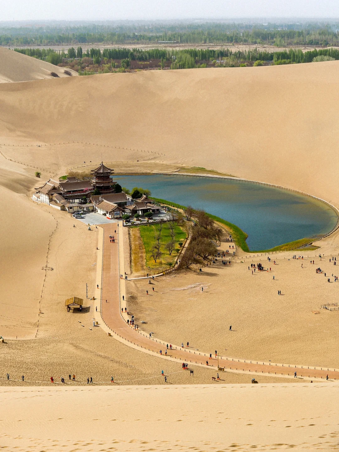 小时候语文课本里的月牙泉,这是来敦煌的必打卡地,在日落时分邂逅一场沙漠橘子海,浪漫无处不在