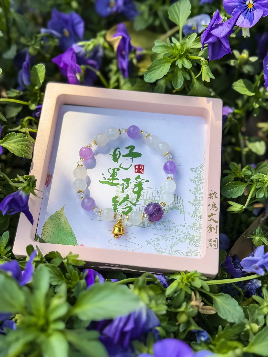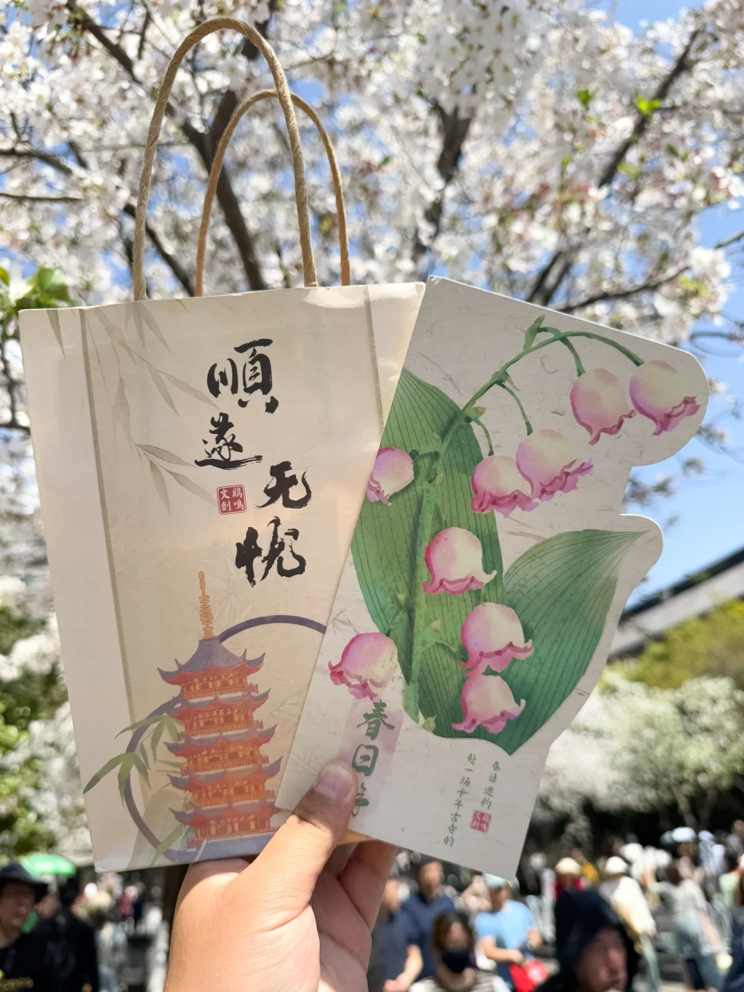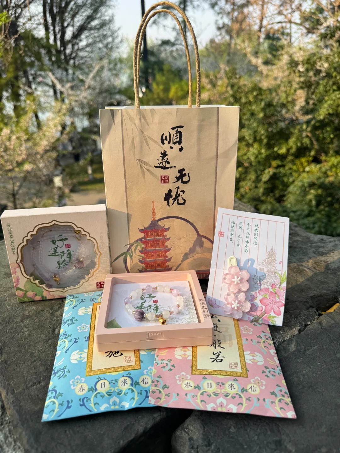可以在这里盖章,领取文创产品,搭配春日来信明信片,来个铃兰花同款也很好看,另外手串晶莹剔透,紫色和粉色樱花都很搭配哦,太美了😭