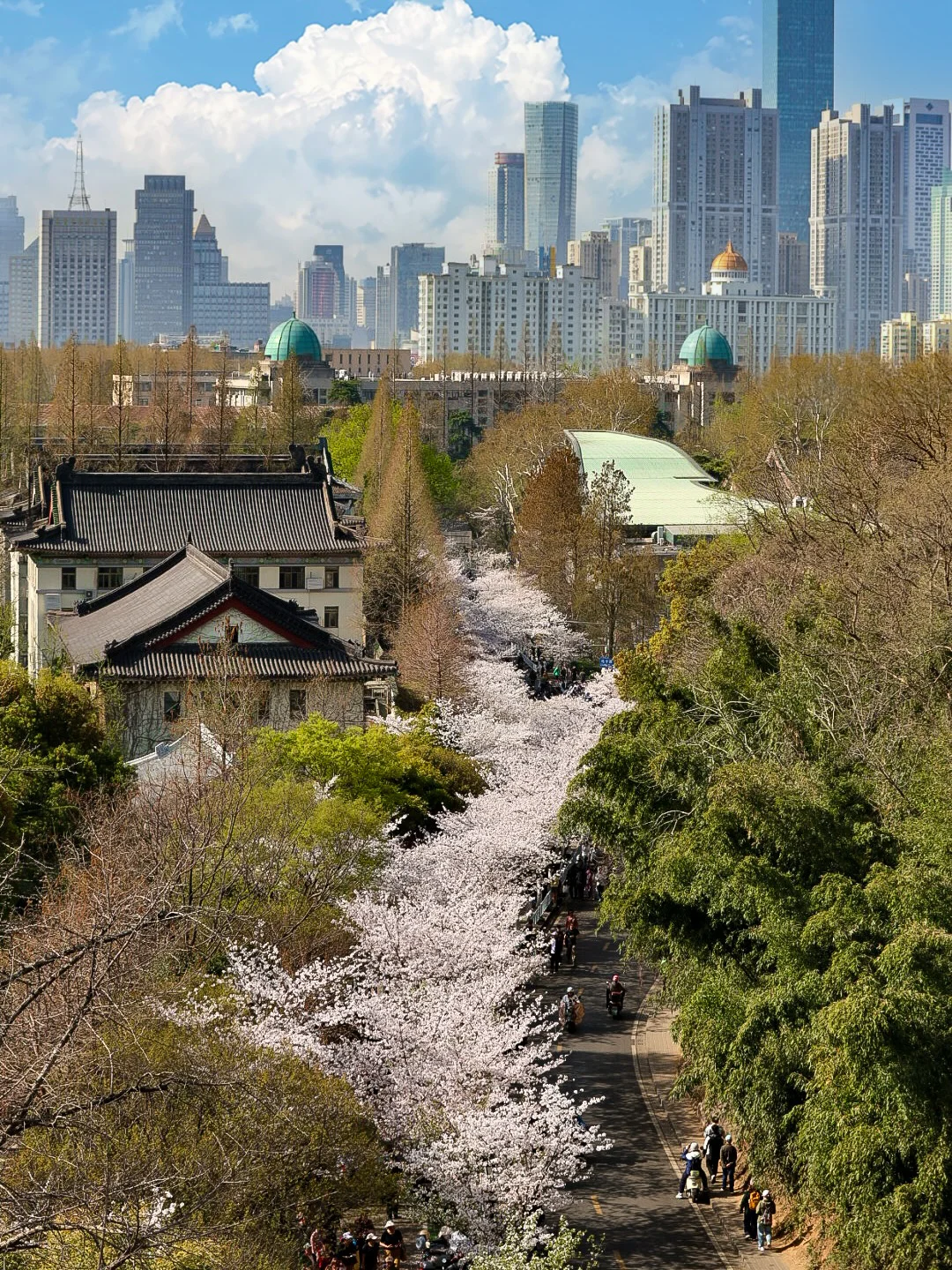 🚶➡️:鸡鸣寺樱花大道[搜索高亮]➡️鸡鸣文创➡️玄武湖➡️古城墙➡️科学咖啡馆➡️珍珠河