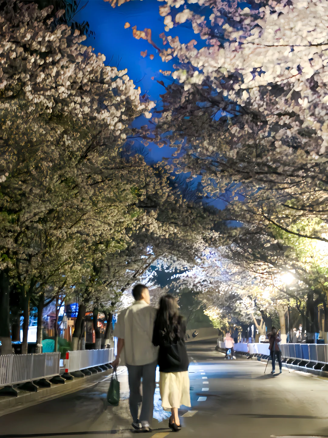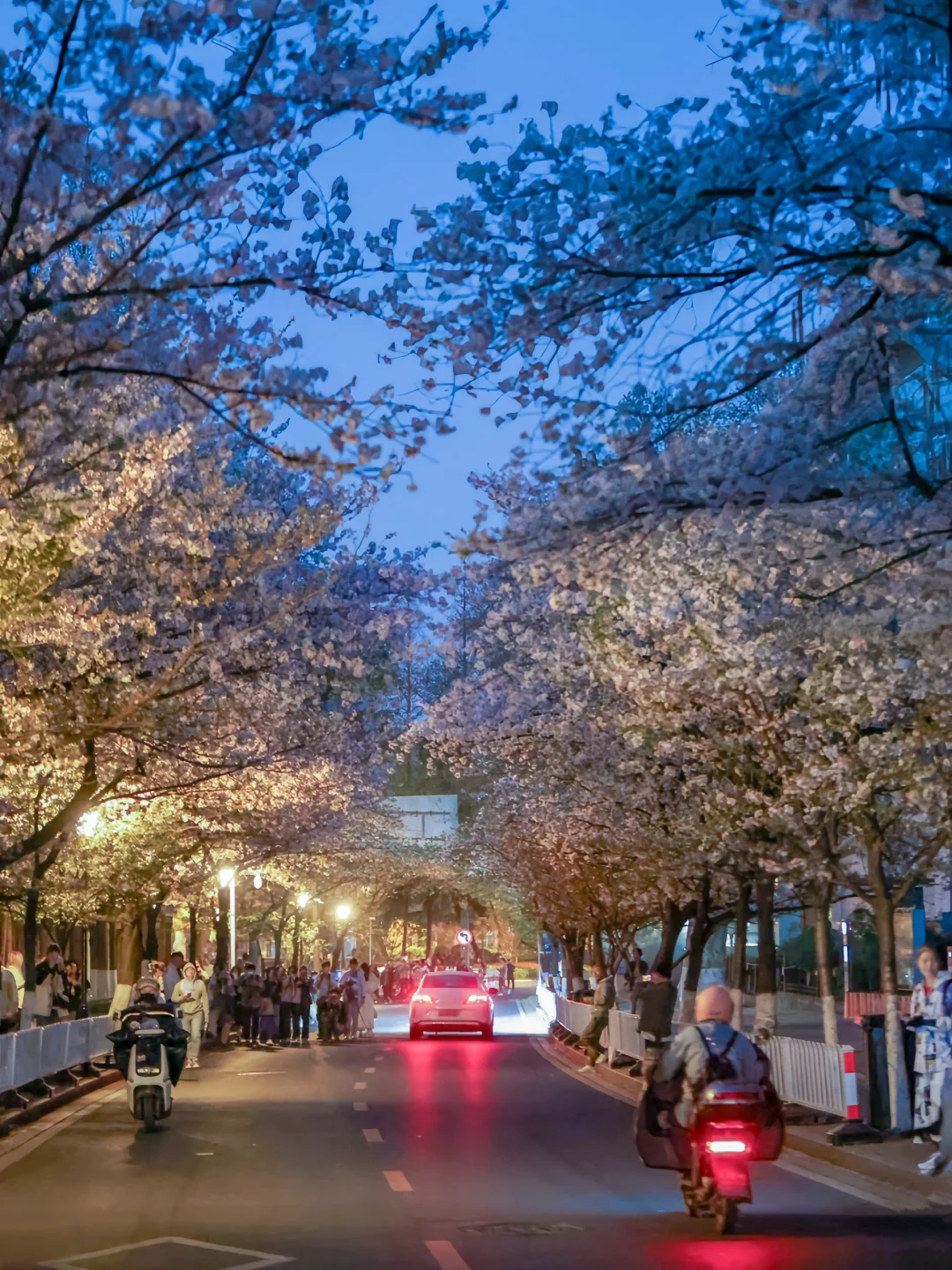 推荐五点来看夜樱,蓝调时刻人较少,也更容易出片,拍照很美