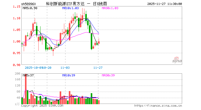 11月27日,截止午间收盘,科创新能源ETF易方达(589960)涨1.52%,报1.000元,成交额2393.60万元。科创新能源ETF易方达(589960)重仓股方面,天合光能截止午盘涨0.96%,晶科能源涨0.36%,大全能源涨1.36%,阿特斯涨1.11%,厦钨新能涨2.91%,天奈科技涨3.97%,容百科技涨1.81%,孚能科技涨1.51%,嘉元科技涨0.39%,聚和材料涨1.78%。