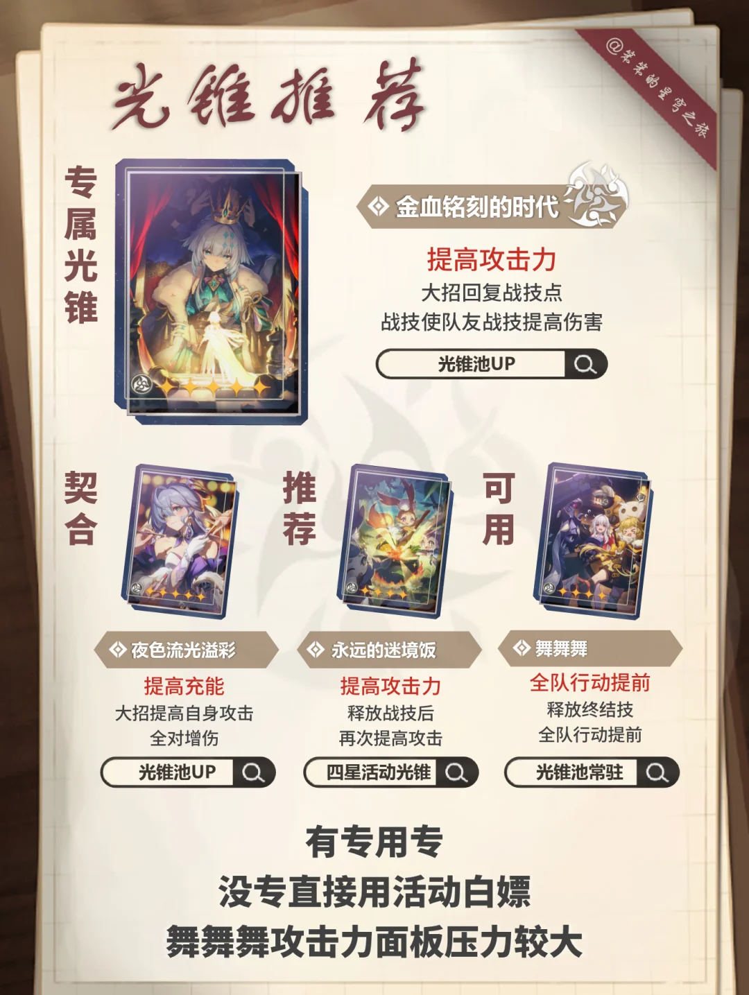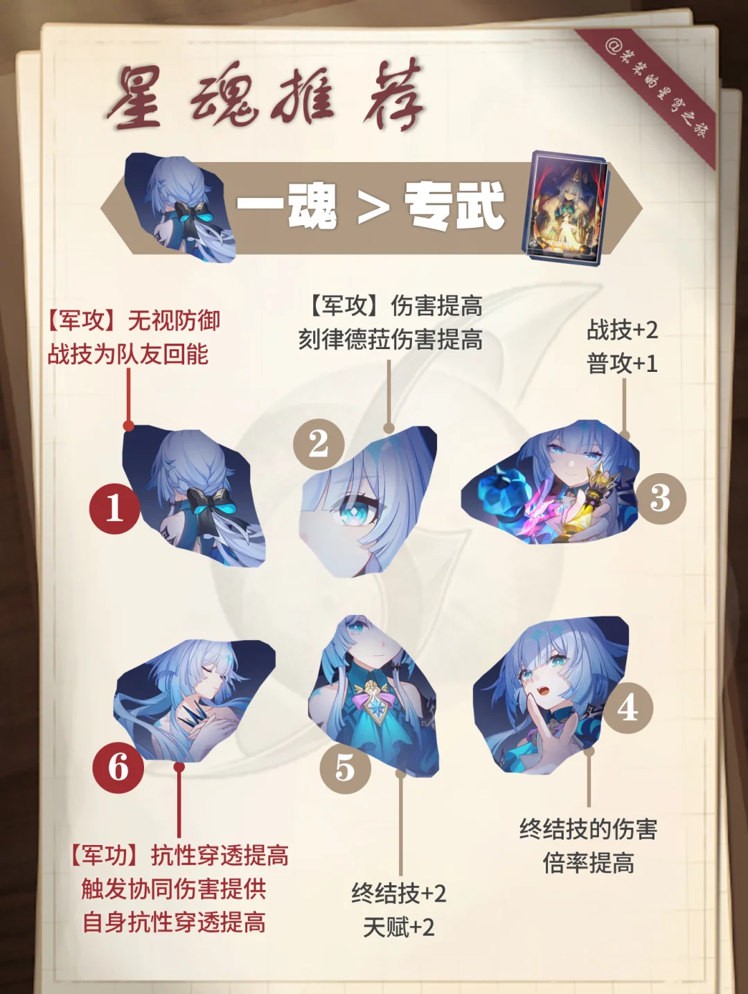 🐱大家好,我是笨笨的铲屎官 今天给大家带来的是刻律德菈的培养攻略 ▶刻律德菈的核心机制是复制战技 特定条件可以上主C打出双战技 所以适配的主C有:白厄、红A、那刻夏 强烈建议有白厄的玩家抽取 无论你的白色是0+0还是2+1 崩坏星穹铁道 崩坏星穹铁道创作者激励计划 星穹铁道日更挑战 星穹铁道翁法罗斯 星穹铁道攻略 虚构史学家 英雄未死之前 刻律德菈 星穹铁道刻律德菈 笨笨的铲屎官的星穹攻略 刻律德菈0+0即可 优先1+0,然后1+1