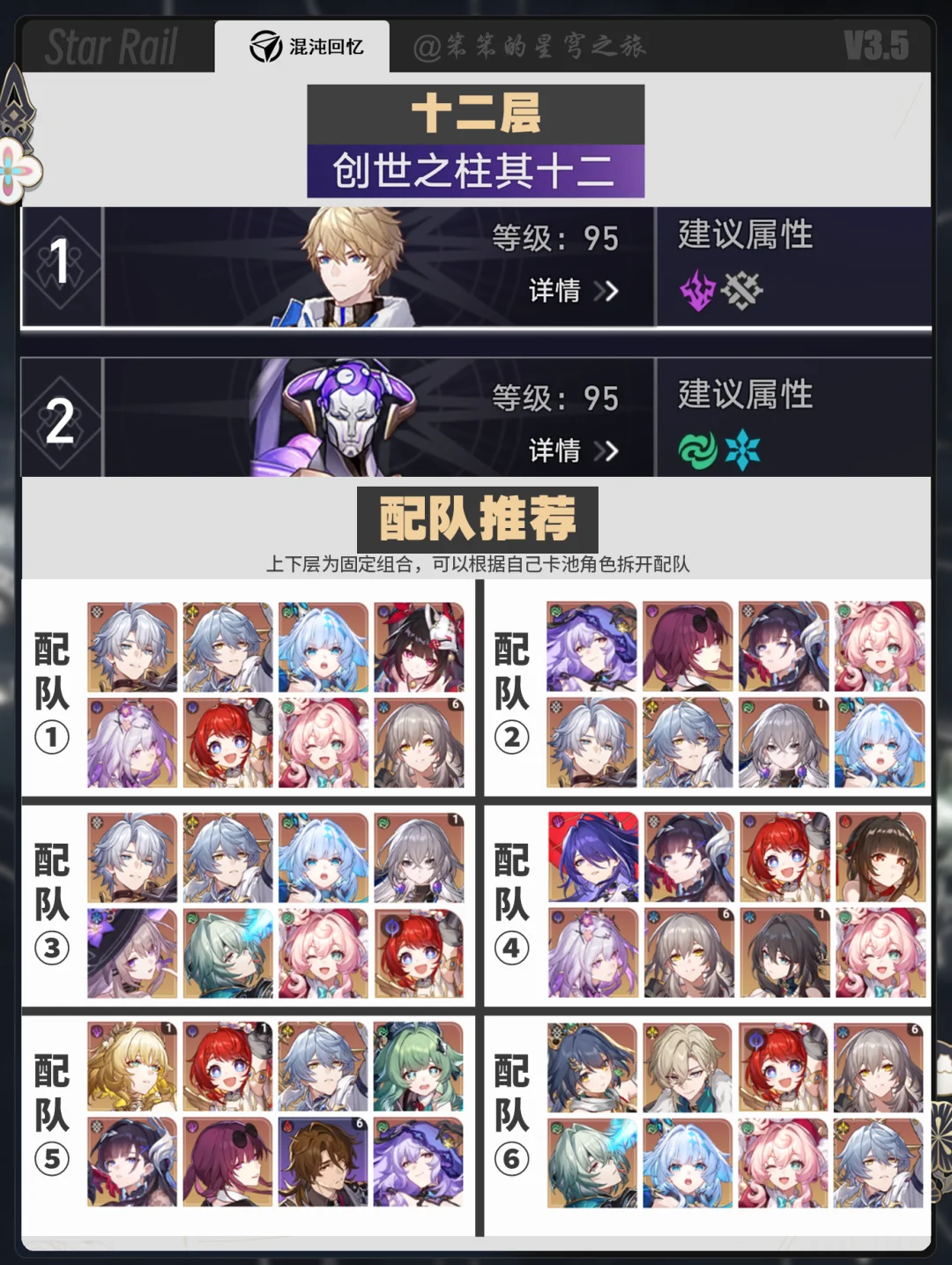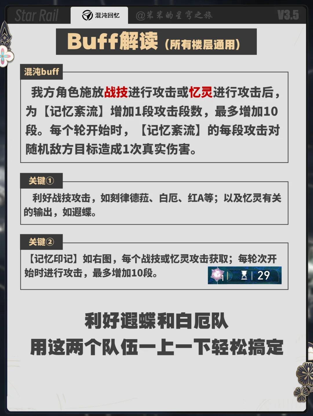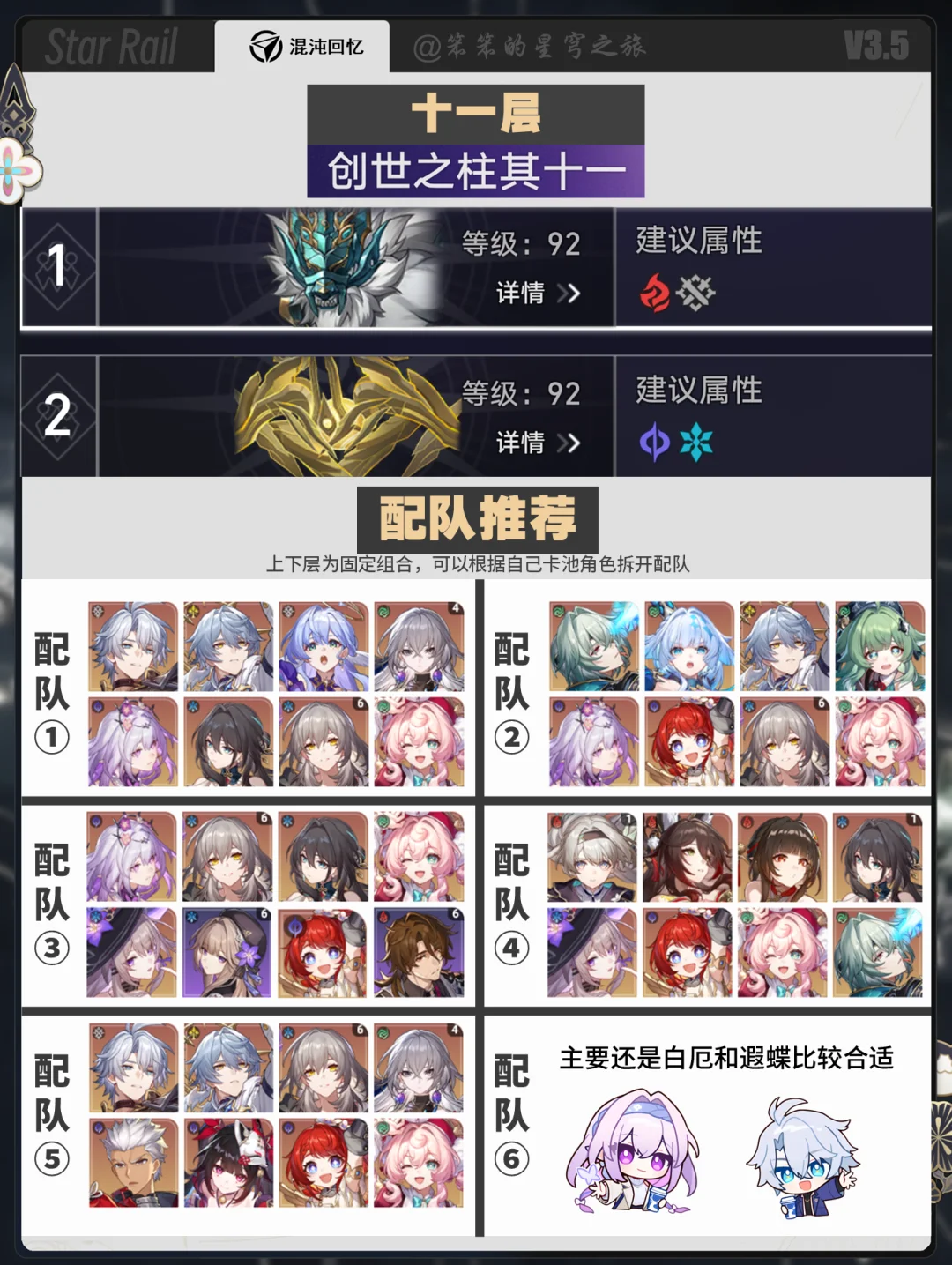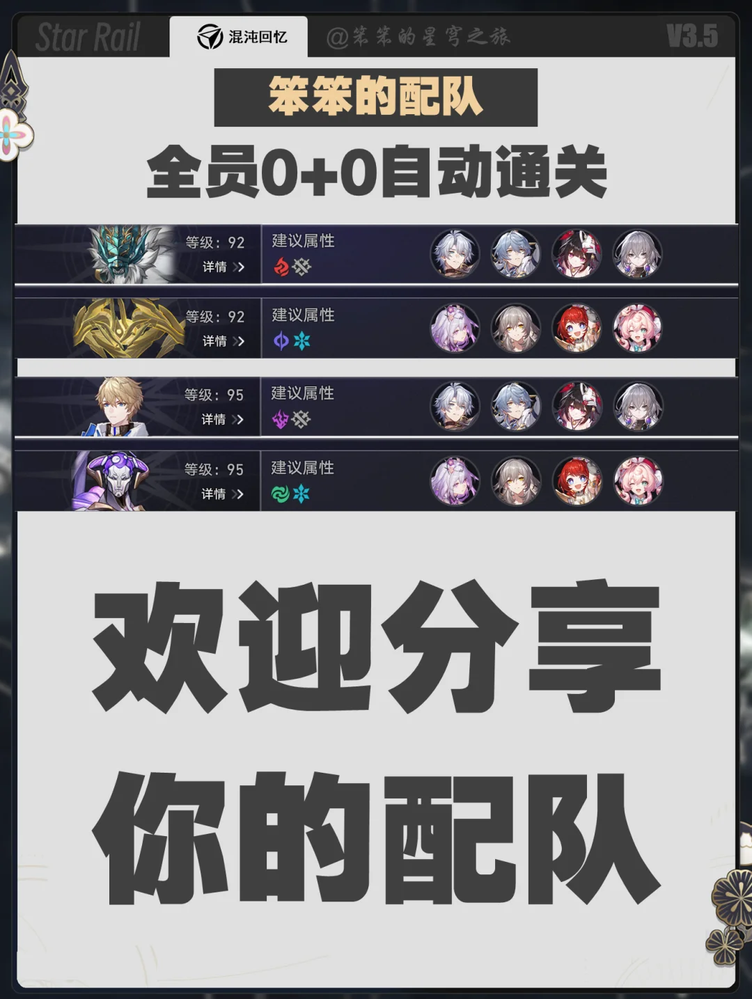 🐱大家好,我是笨笨的铲屎官 最新一期混沌回忆来了 用好白厄、遐蝶就问题不大了 两大版本主推角色都可以一战 0+0轻松拿下所有奖励 PS:笨笨的推荐配队 大家参考主C为主 队友可以根据自己卡池调整 上下配队也并不为固定组合