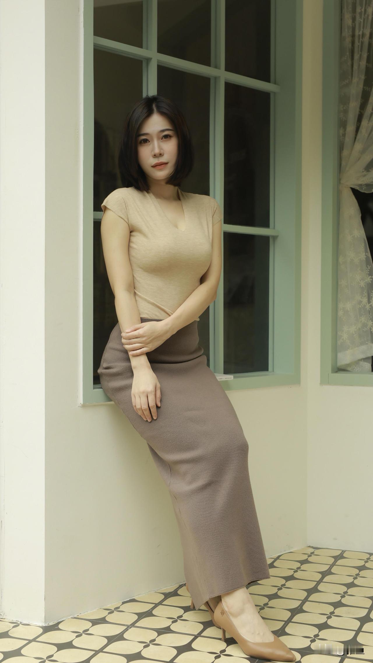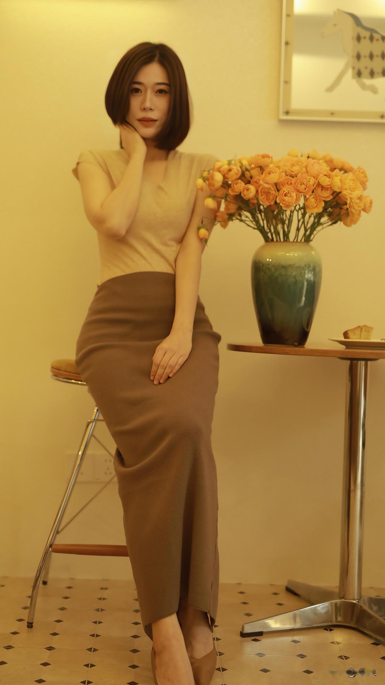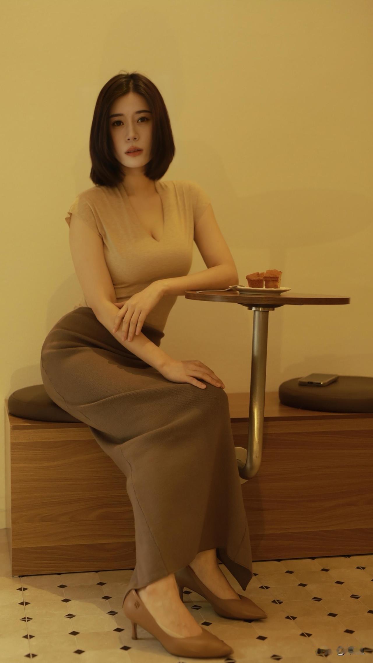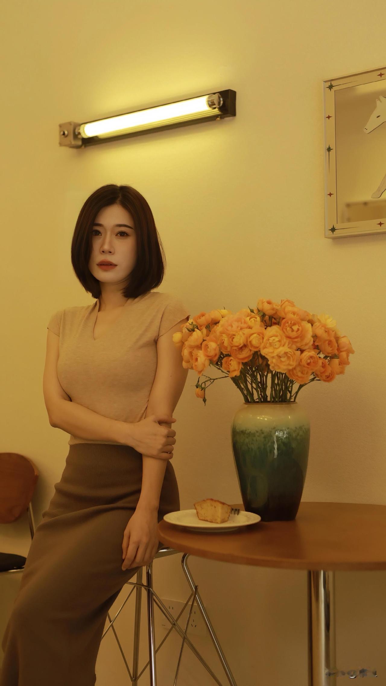 吴越新烫了微卷短发,轻盈蓬松间焕发年轻气息,整个人美出新高度。她眉眼沉静、气质温