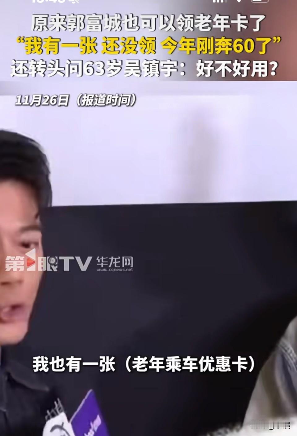 郭富城也有老年卡了…[泪奔]更搞笑的是他问吴镇宇好不好用,吴镇宇一脸懵哈哈哈… 郭富城一家出去玩只有他老婆需要买票…哈哈哈🤣 郭富城竟然比我爸还大,保养的真好,吴镇宇也是,香港人真会保养 他们的状态真好,看着就像40多的…[泪奔]郭富城 吴镇宇