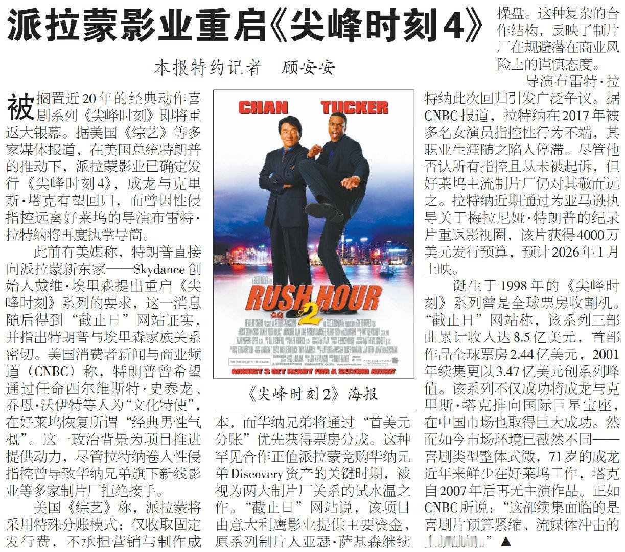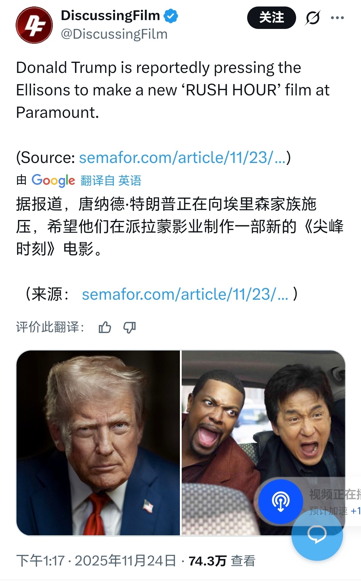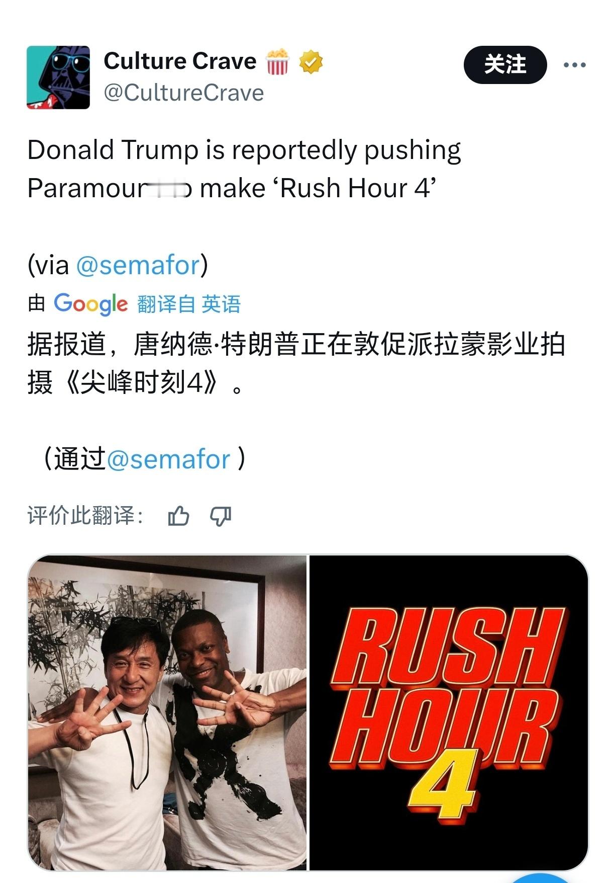 特朗普催更《尖峰时刻4》成功。特朗普施压高市别在台湾问题上挑衅