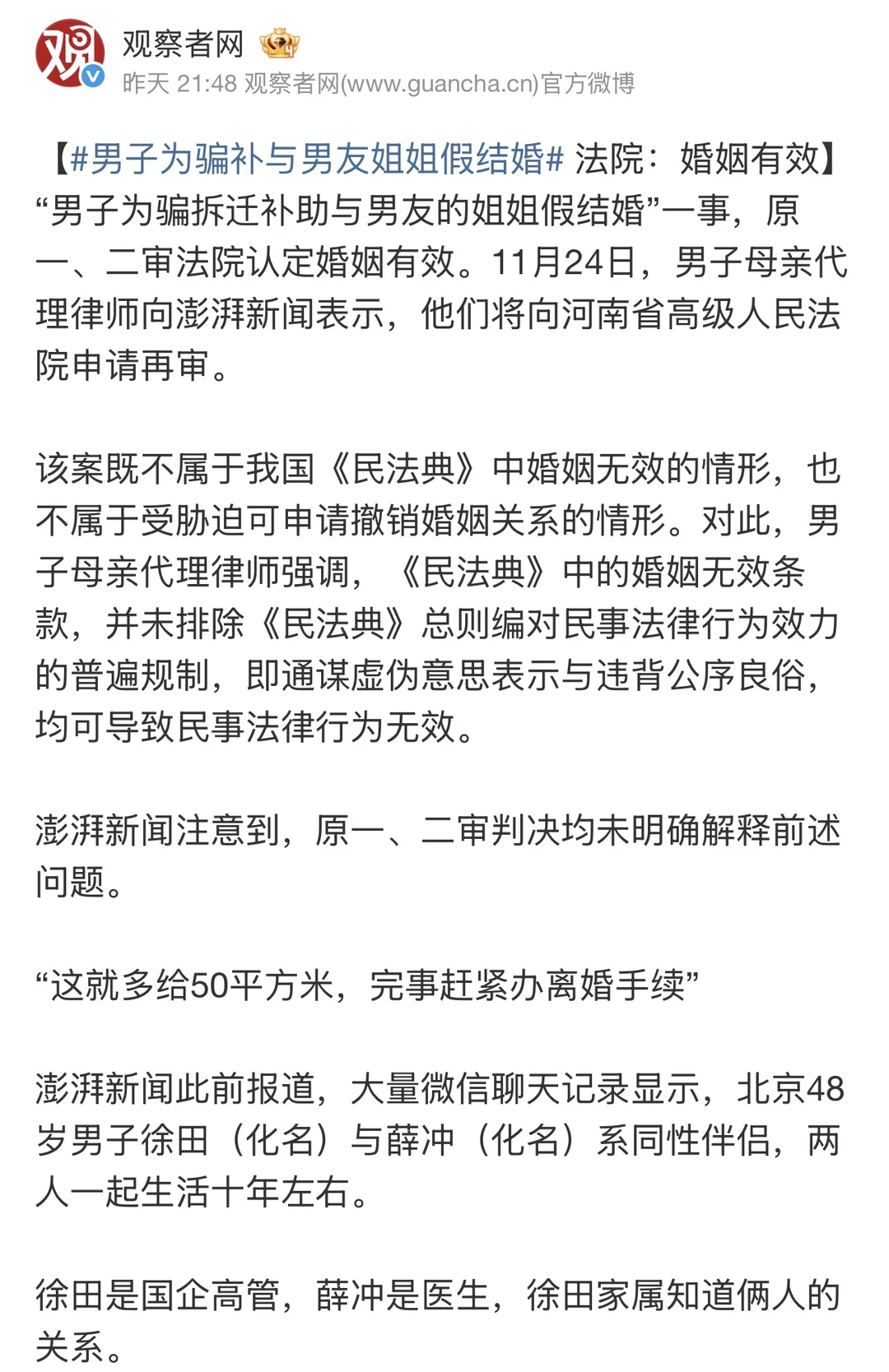 ⚖️ 最近"男子为骗补与男友姐姐假结婚"一案引发广泛关注