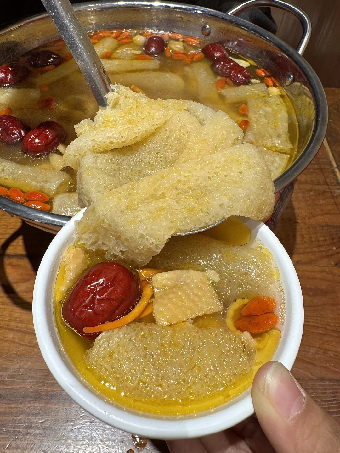 名不虚传!!值得我坐20站地铁去吃的😭就在博奥路站出来!都是附近本地居民来吃!!开了六七年了! 老长沙杂烩锅!热乎乎的好适合冬天😭蛋卷、肉丸、虾饺…料巨多汤好鲜!一口下去真的惊为天人的好吃!!鱼籽鱼泡锅、竹荪炖鱿鱼鸡…随便点点都不踩雷!