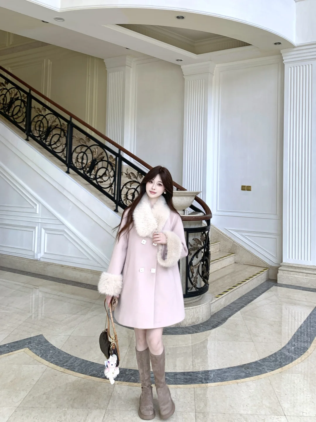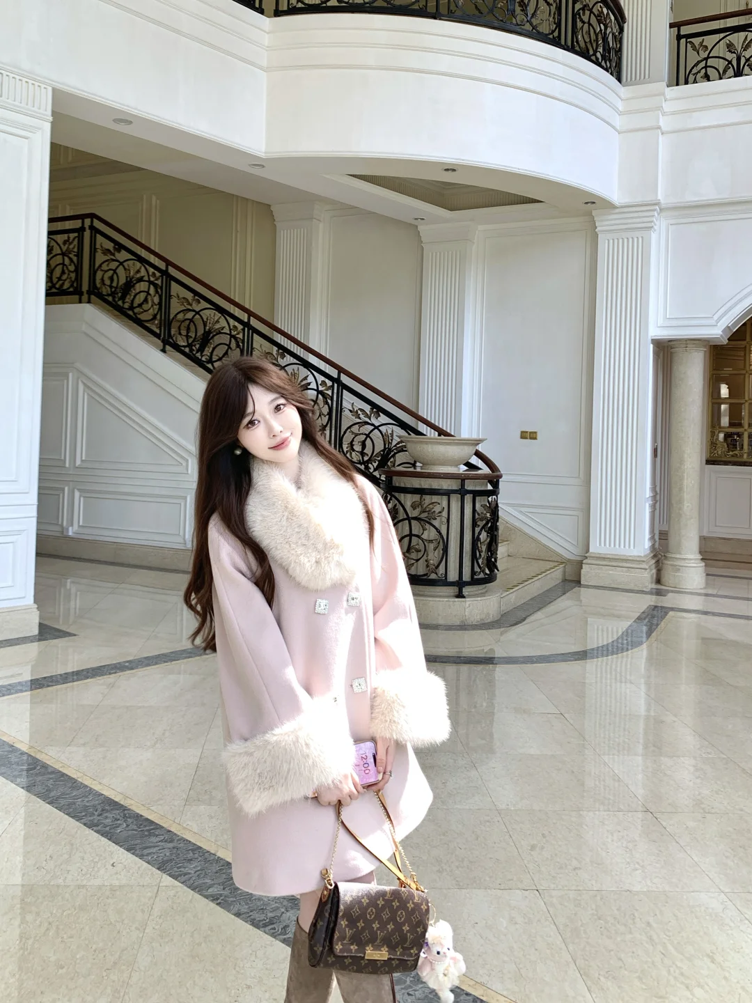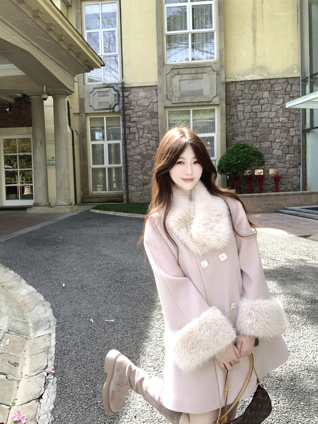 粉粉嫩嫩 满满的少女心 粉色大衣 小个子外套