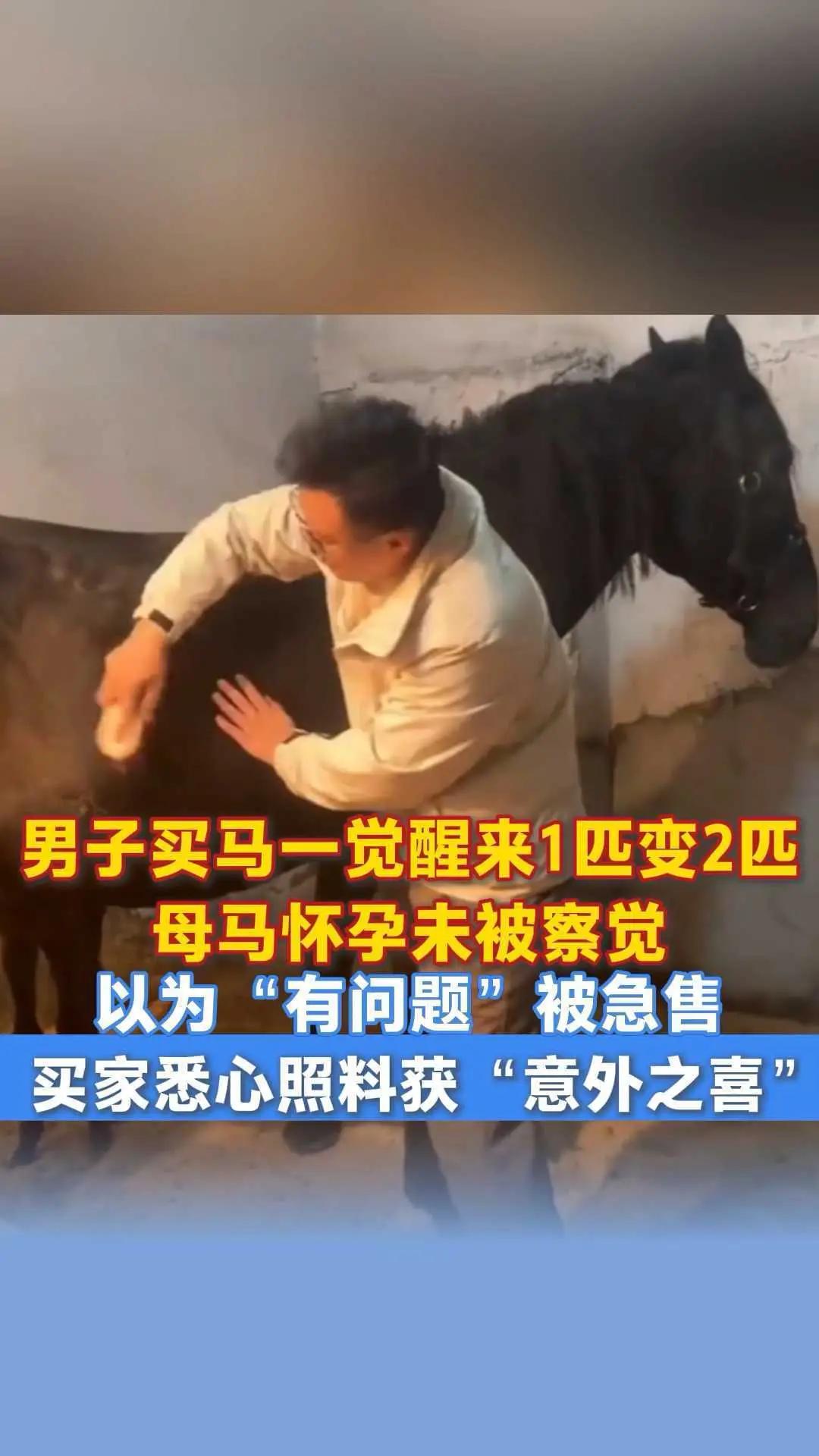 “这下后悔了吧!”10月24日,在山东淄博,一位男子购入一匹精神状态不佳的母马,原主人因担心其健康问题而决定出售,没想到第二天清晨,马厩里竟多了一匹活蹦乱跳的小马驹。[给你小心心] 这匹母马交易时表现出的行动迟缓、食欲不振,其实都是临近生产的正常反应,母马的妊娠期通常在11个月左右,临产前会出现腹围明显增大、乳房发育等征兆,有经验的饲养者通过这些体征就能准确判断怀孕状态。 按照马匹交易规范,卖方理应如实告知动物的健康状况,不过这次事件中,原主人确实没能识别出这些怀孕迹象,属于经验不足导致的误判。 新主人对这场意外之喜感到十分欣慰,他正精心照料产后的母马,确保母子平安,这个小生命的突然到来,也让他原本的养殖计划增添了新的内容。 关于男子买马一觉醒来1匹变2匹,母马怀孕未被察觉以为“有问题”被急售这个事件引发了不少网友的热议。 “这位大哥花一匹母马的钱,第二天早上直接升级成“母子套装”,这运气也是没谁了,不过说真的,这种好事还真不是人人都能接住的。” 有懂马的网友说,“母马临产前确实会精神不振、不爱活动,卖家误以为是生病也情有可原,但这位买马大哥的善良才是关键,明明发现马状态不好,不仅没退货还悉心照料,这份善意最终得到了最好的回报。” “这种“买一送一”的惊喜背后也有风险,万一母马难产或者小马驹体弱,都需要专业护理,幸好这次母子平安,不然可能就是另一个故事了,所以养马确实需要专业知识,不能光靠运气。” “这波真是赚大了,一匹健康的小马驹市场价可不低,更何况这种意外之喜带来的快乐更是无价,不过养两匹马的成本也要翻倍,草料、疫苗、马厩都要跟上,甜蜜的负担啊。” 如果你遇到类似情况,会怎么处理?是选择退货避免风险,还是像这位大哥一样承担起责任?欢迎在评论区分享你的选择和理由! 信源:大象新闻