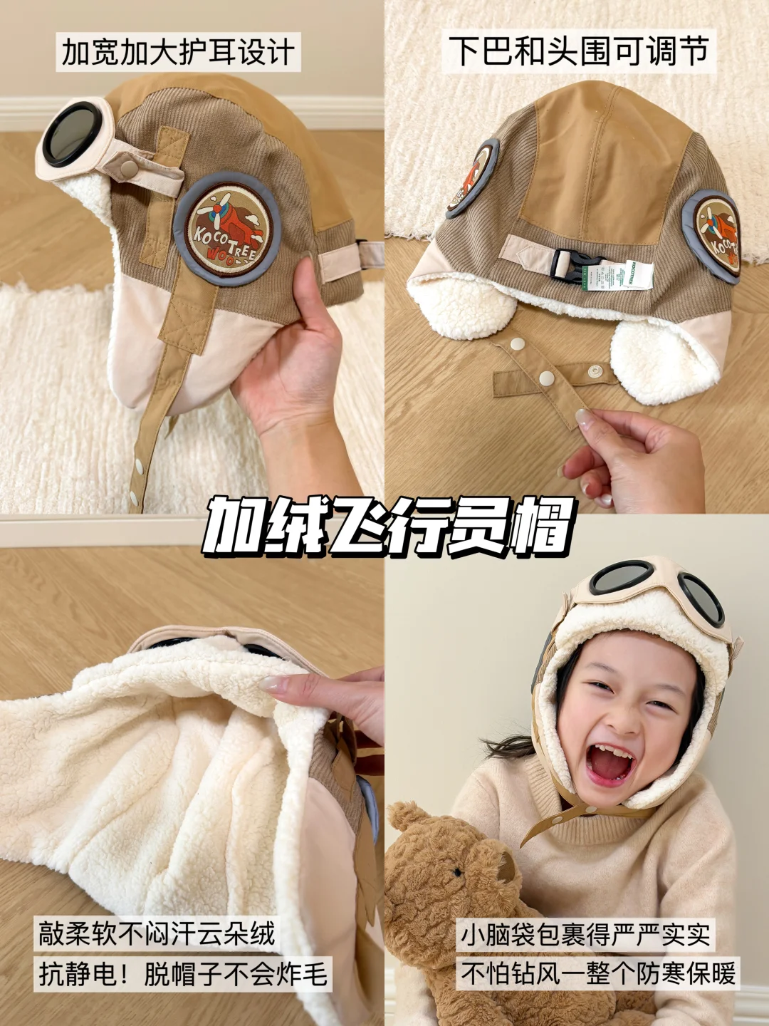👒保暖帽三层防风+软乎乎绒绒的大护耳款,不仅够暖和,还把保暖耳罩也省了,紧紧包裹小脑袋暖烘烘♨️!如果带可调节扣就更好了,娃大了再戴几年都ok。