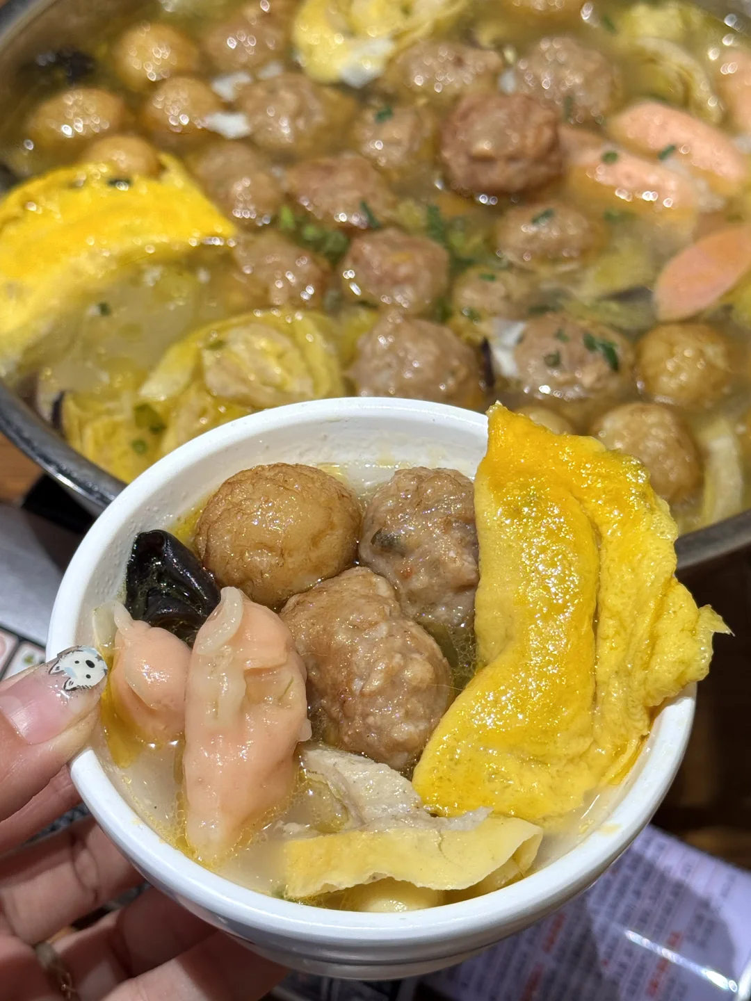 值得我坐20站地铁来吃的!!!! 老长沙杂烩锅!本湘女作证真的一口吃到家的味道了😭手工肉丸、蛋卷、鹌鹑蛋…一定要边煮边吃 汤都喝了三碗! 鱼籽鱼泡锅、竹荪炖鱿鱼鸡、芥末罗氏虾……好吃到全部光盘!叫:客串)