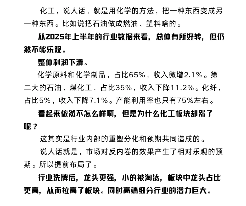 如果看好未来反内卷成效,布局高成长和龙头远比传统化工更好。
