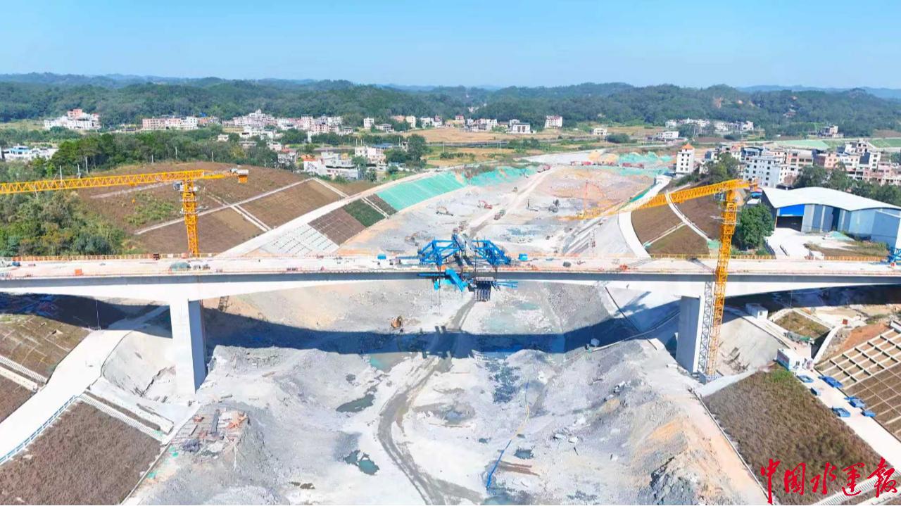 11月26日,平陆运河金塘村大桥顺利合龙,进入桥面系施工阶段。金塘村大桥全长347米,桥面宽度16米,采用双车道设计,连接钦州市灵山县沙坪镇的金科桥和七里街。