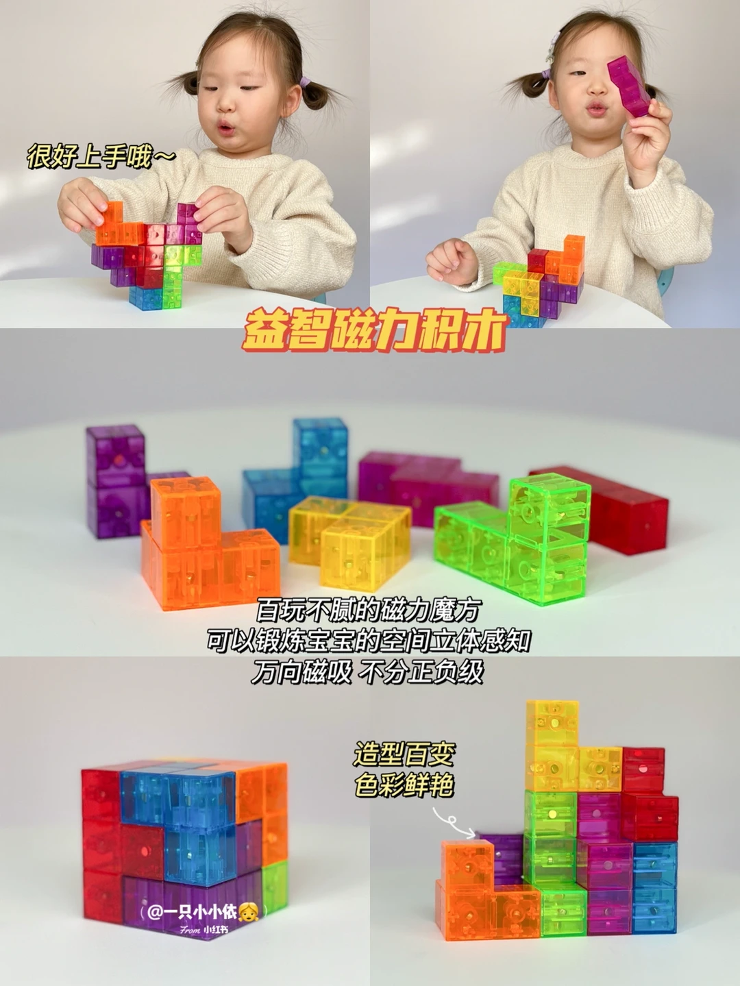 👉不仅是磁力版魔方,也是立体版俄罗斯方块,比普通魔方好玩很多!7种颜色、7块形状,不分正负极,据说能拼出480多种造型!小小一个好携带不占地,可以很好的锻炼宝宝的空间想象力哦