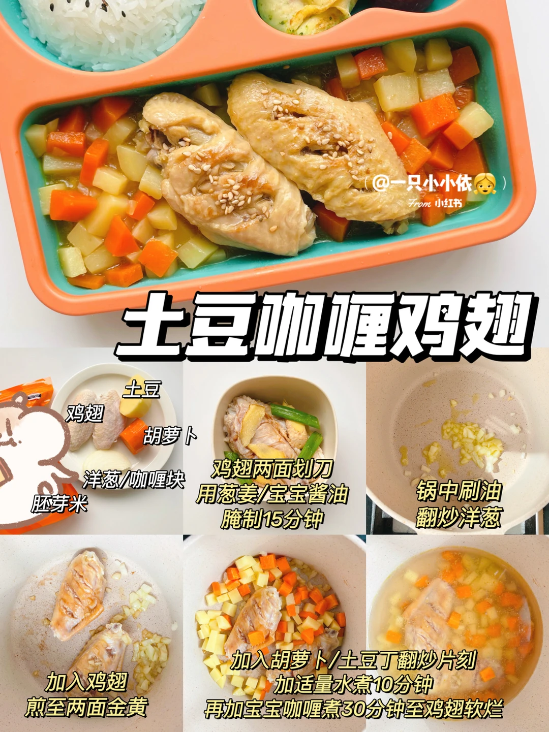 星期2⃣️:土豆咖喱鸡翅+时蔬蛋卷+提子+胚芽米