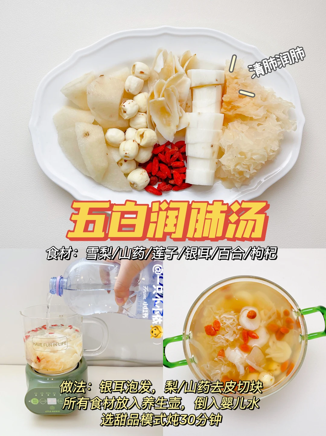 🔹食材:雪梨/山药/莲子/银耳/百合/枸杞