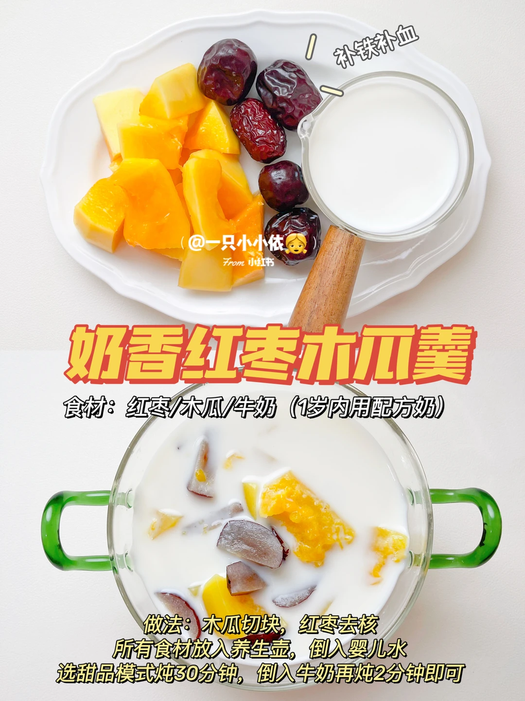 🔹食材:红枣/木瓜/牛奶(1岁内用配方奶)