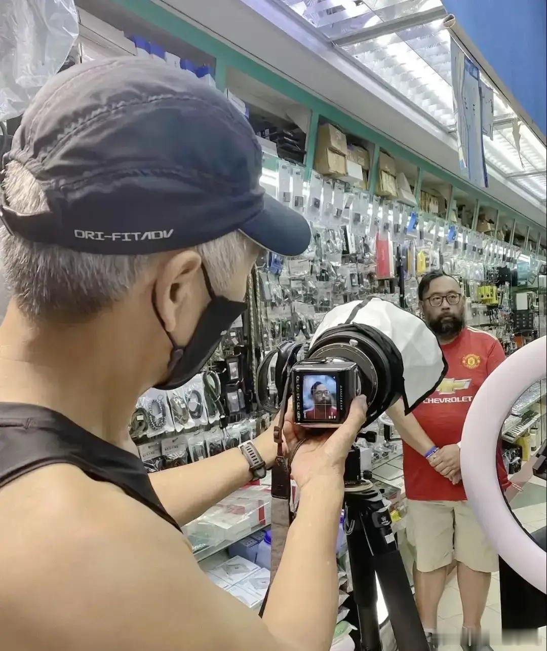70岁的周润发在香港街头被偶遇,满头白发的他手持相机拍照,神情愉悦,状态轻松自在,画面十分惬意。