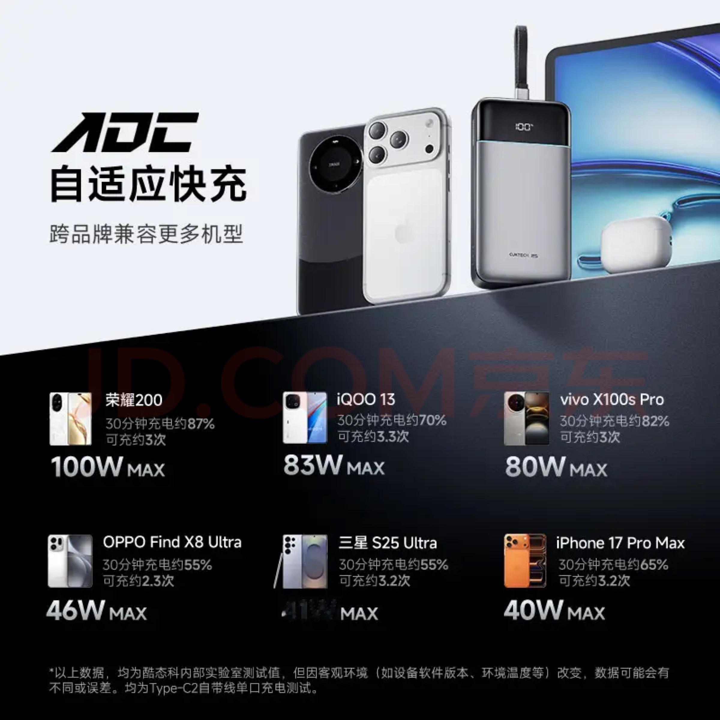 酷态科又上新品了,大容量的「酷态科 25号超级电能块 SE」,五个关键字,25000毫安、120W、售价179、自带线、能上飞机。性价比很高,1A2C自带线,同时支持小电流供电,附上官方的支持设备功率图,大家可以做个参考。适合户外、旅行以及经常出差的小伙伴,主打就是一个量大管饱。