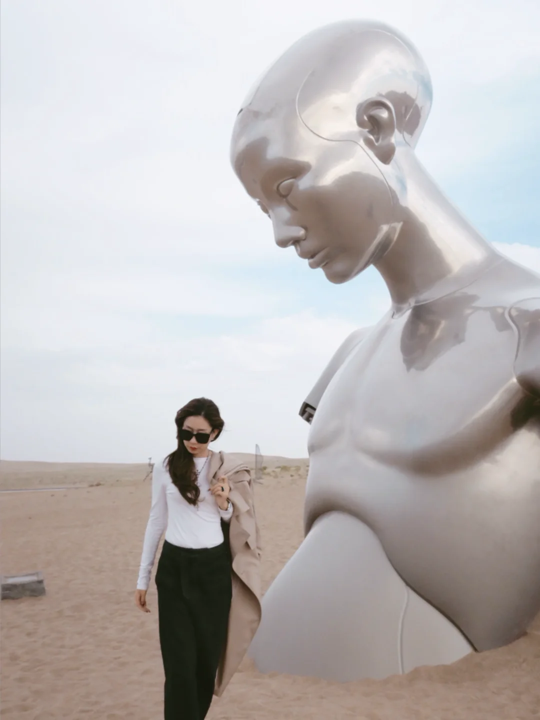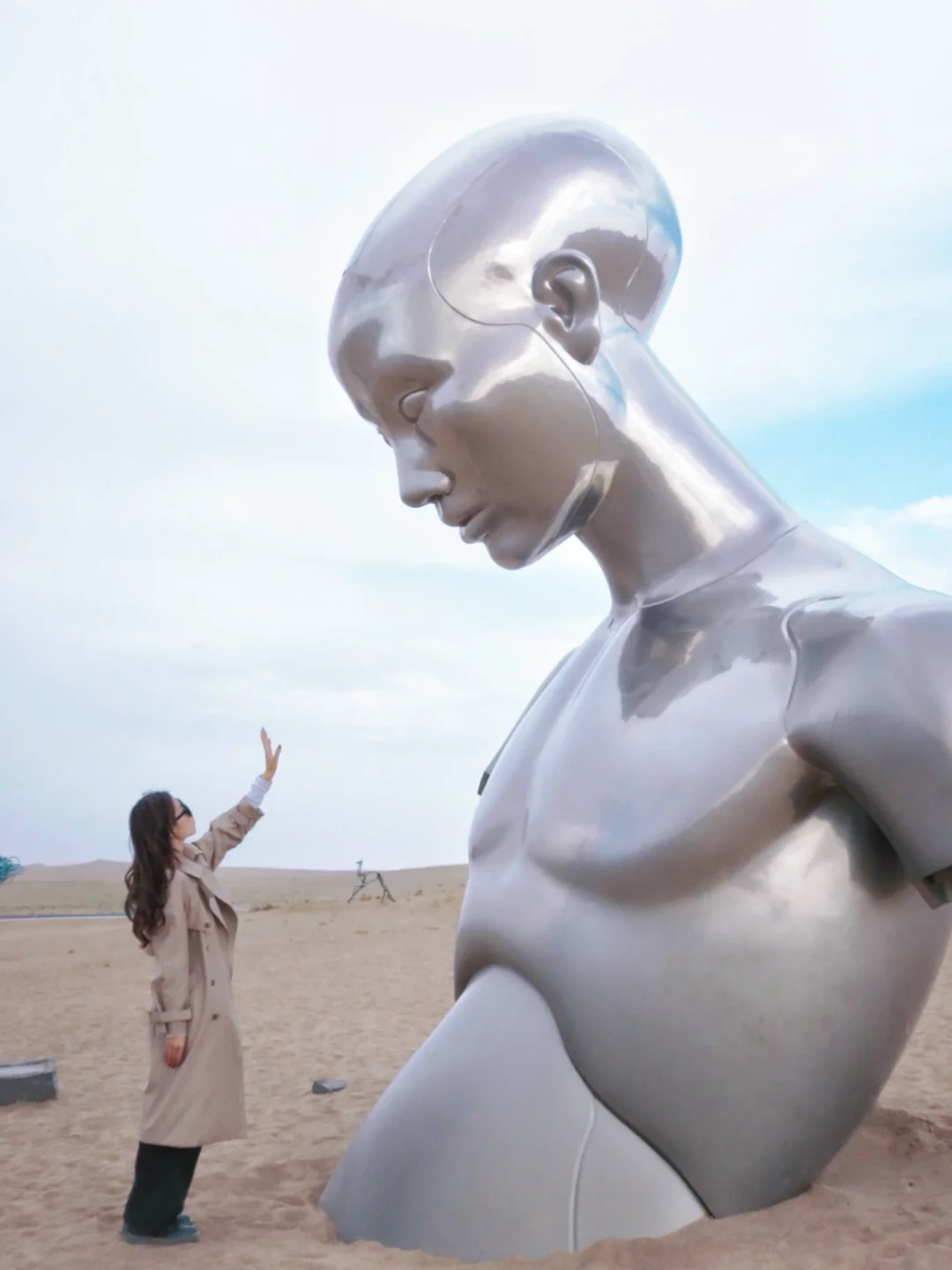 超级超级多的沙漠雕塑🏜️可以重点去拍:与未来对话(就那个银色的巨人)、白色的海市蜃楼、拎公文包的巨人、钢丝球一样的脸