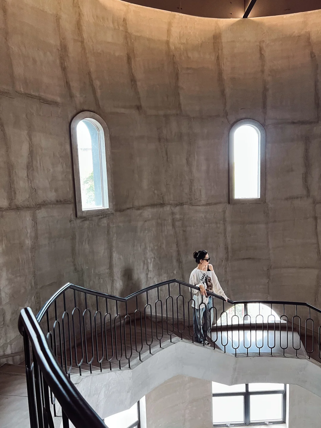 位于麓山美术馆内,12米高的旋转楼梯简直是艺术大片诞生地!建议从俯拍或仰拍角度,突出建筑的几何美感。