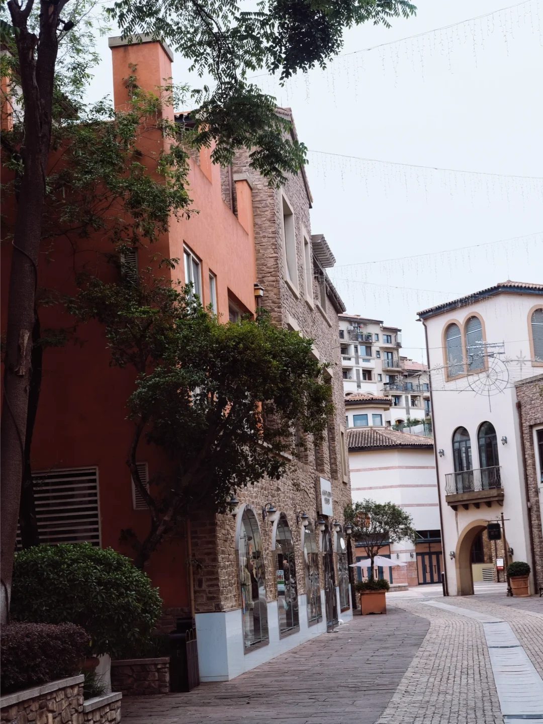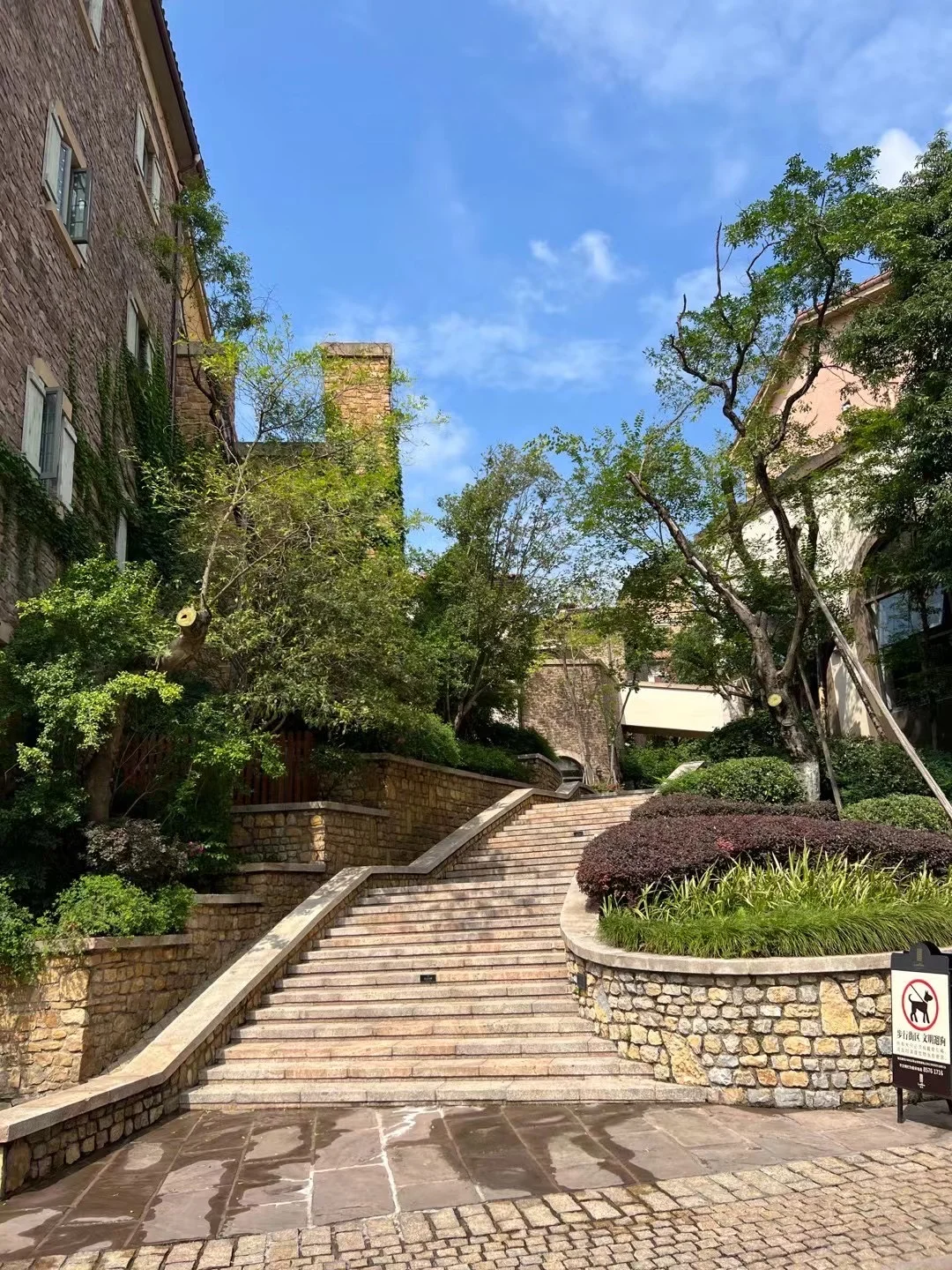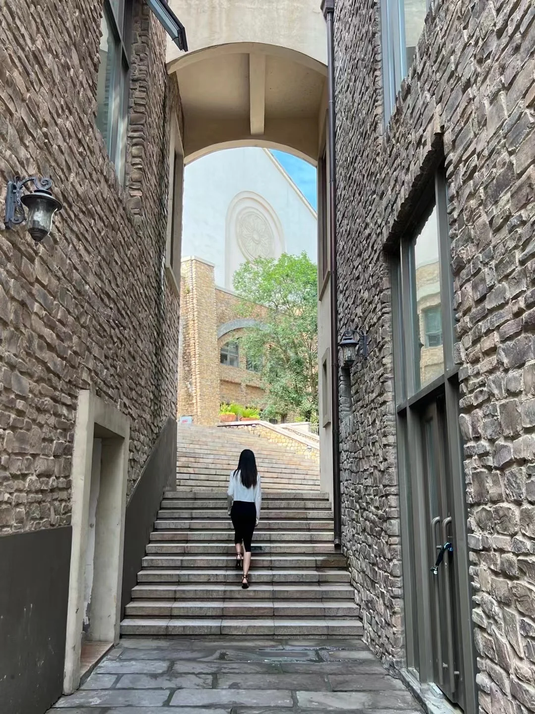 超有异国气息的石板墙,搭配复古铸铁雕花路灯,简单走路抓拍都很有氛围感。