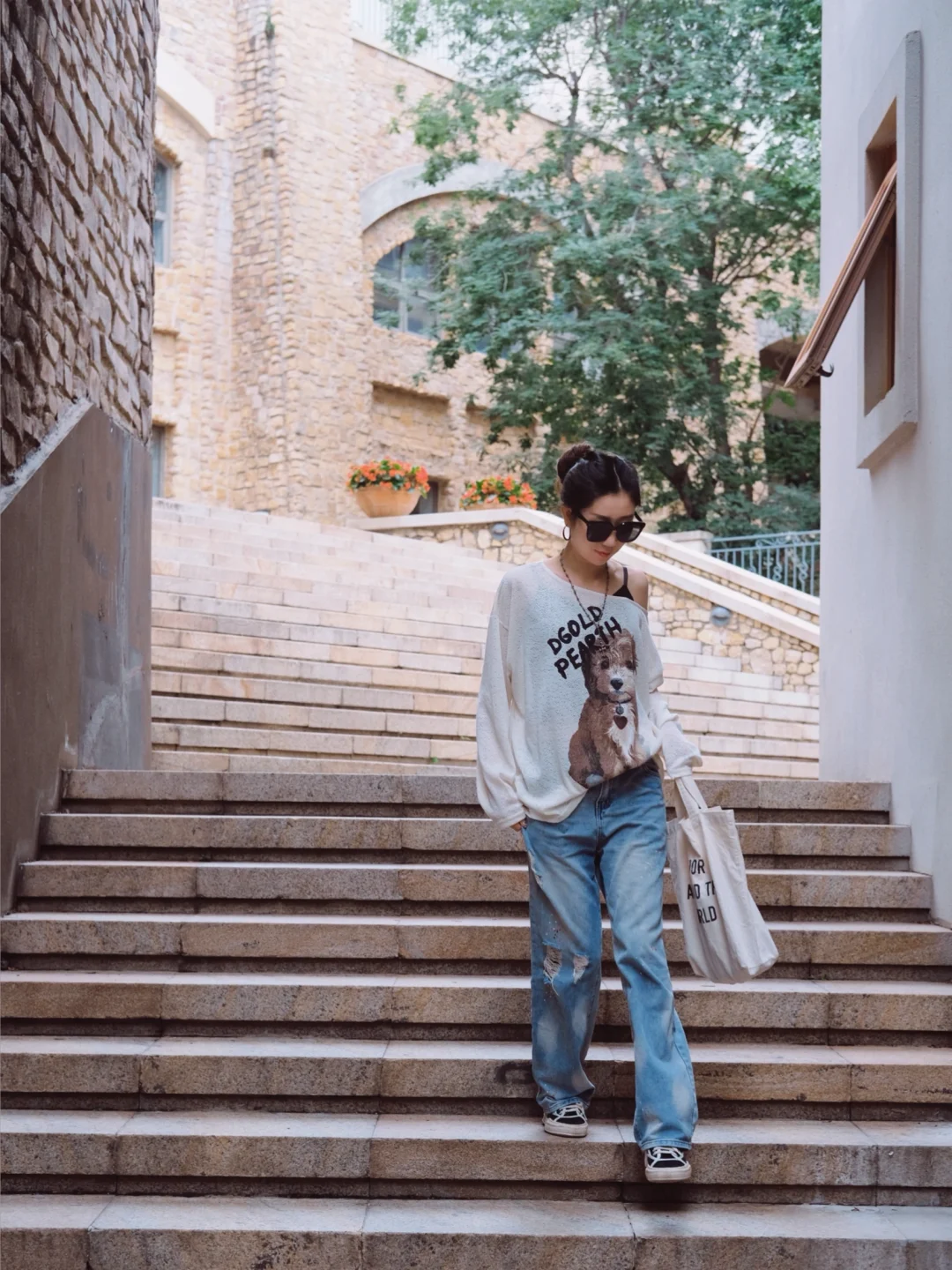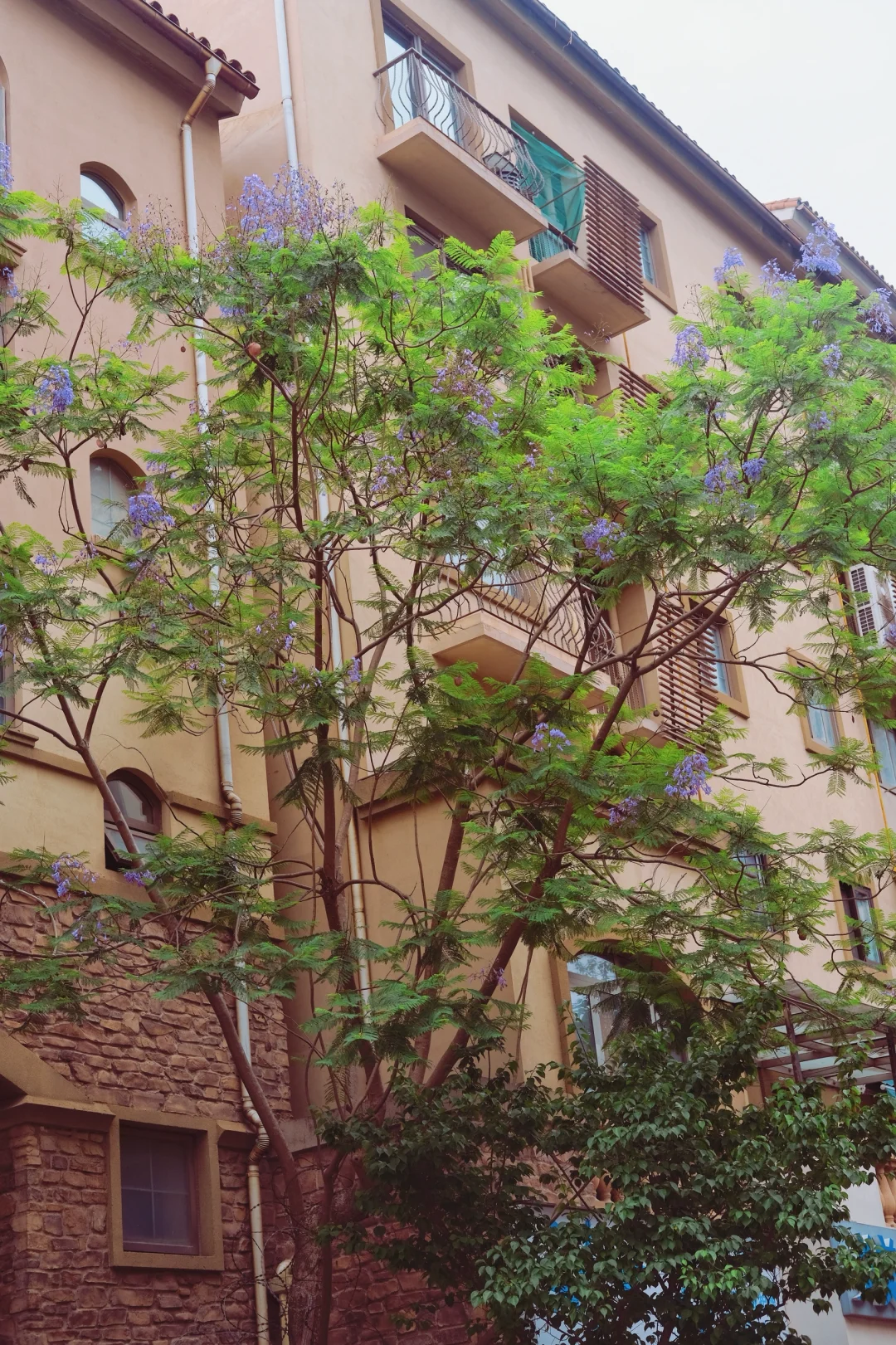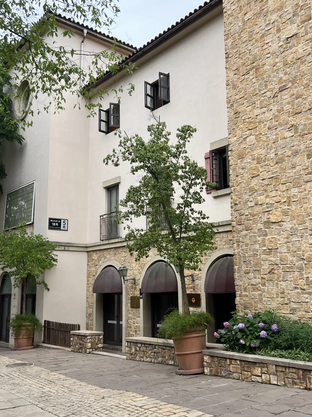 超有异国气息的石板墙,搭配复古铸铁雕花路灯,简单走路抓拍都很有氛围感。