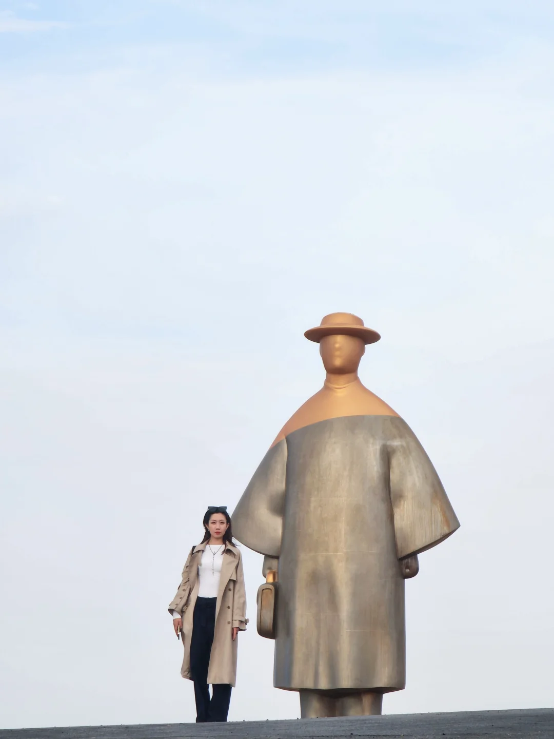 我是坐了进去的观光车,先拍白色海市蜃楼,然后从左边一直转过来,最后拍拿着公文包的巨人,就可以溜达出来了!