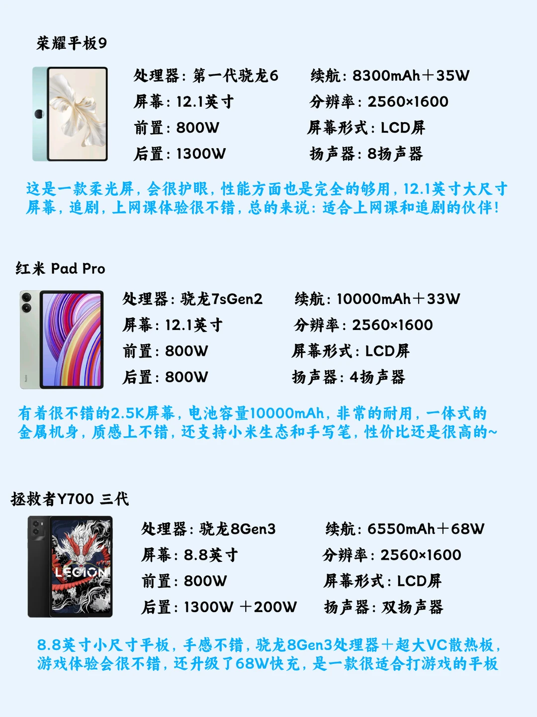暑假期间!很多宝宝都在问🤔,想入手一款高性价比的平板[暗中观察R][暗中观察R],但每个人的预算都不一样,根据大家的需求,我给大家筛选了9款高性价比的平板[害羞R],大家可以根据自己的需求来!